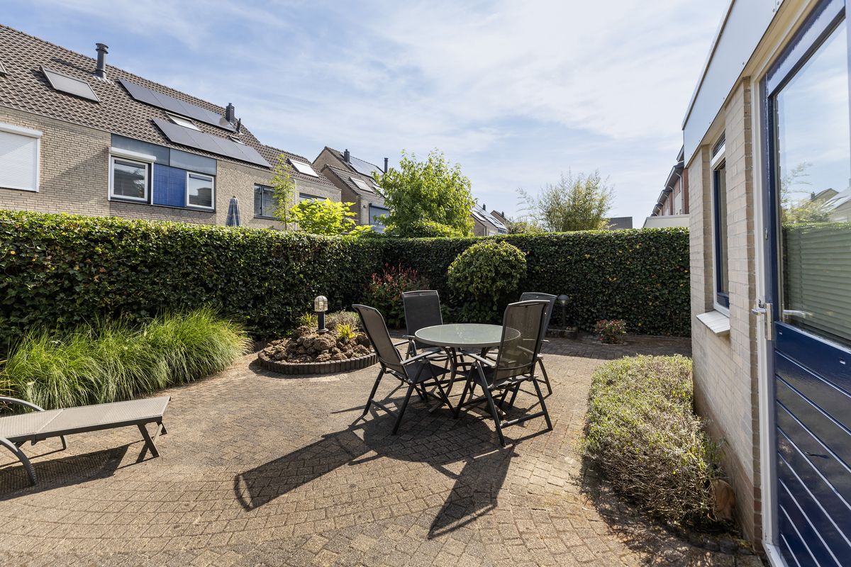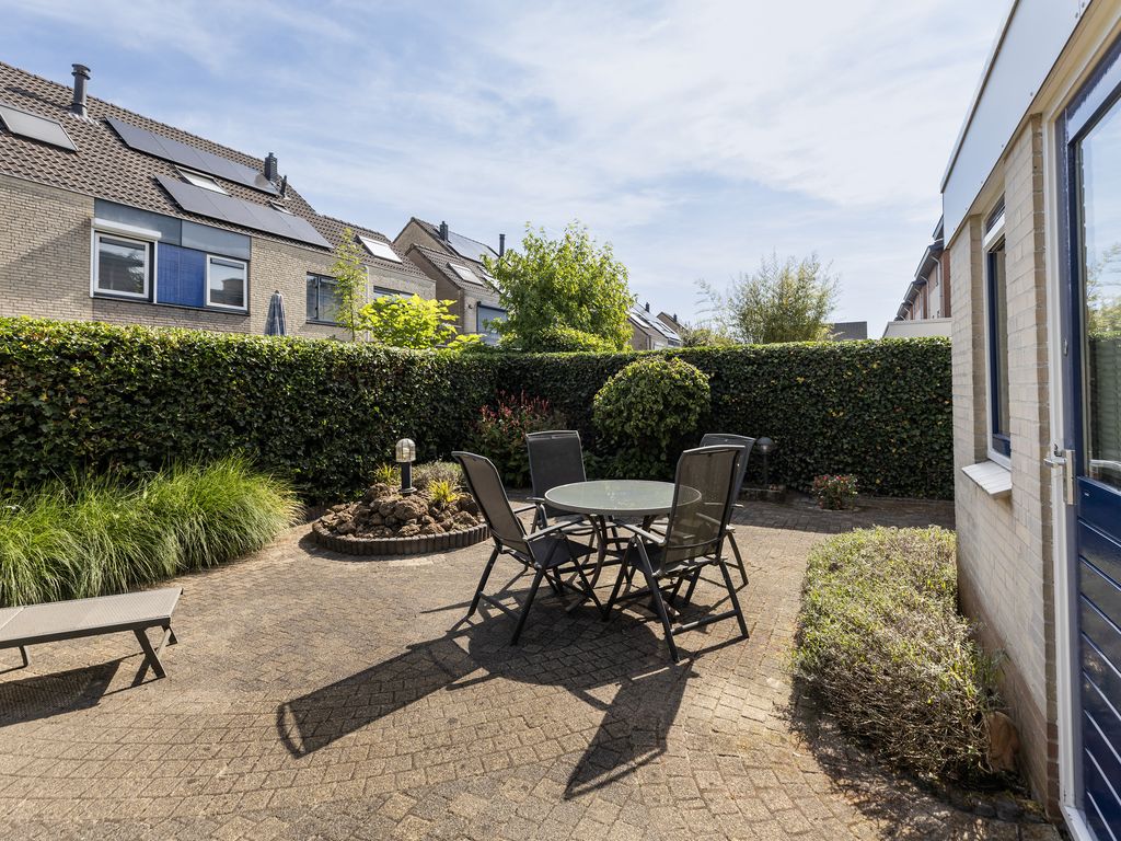 Deze is onderhoudsvriendelijk aangelegd met sierterras en plantenvakken.