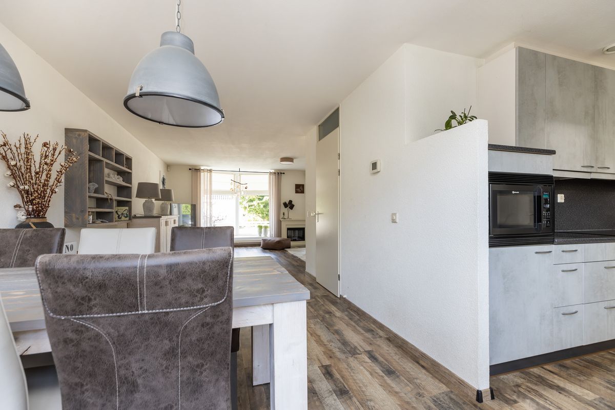 Aansluitend bevindt zich de praktische bijkeuken met doorgang naar de tuin en de garage.