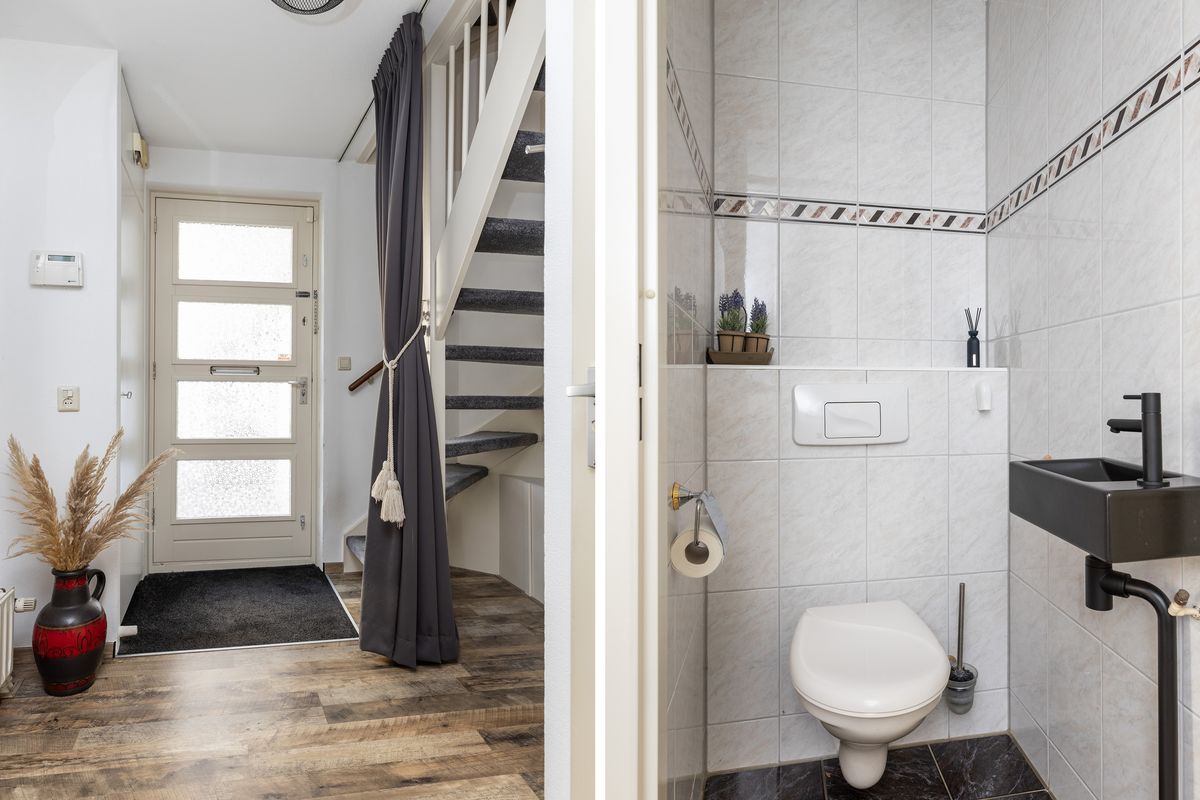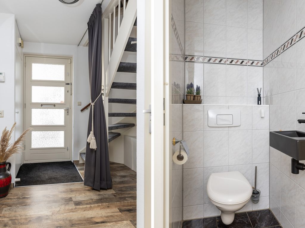 Bij binnenkomst stap je in de ruime hal met toegang tot de meterkast, de trapopgang en de toiletruimte.