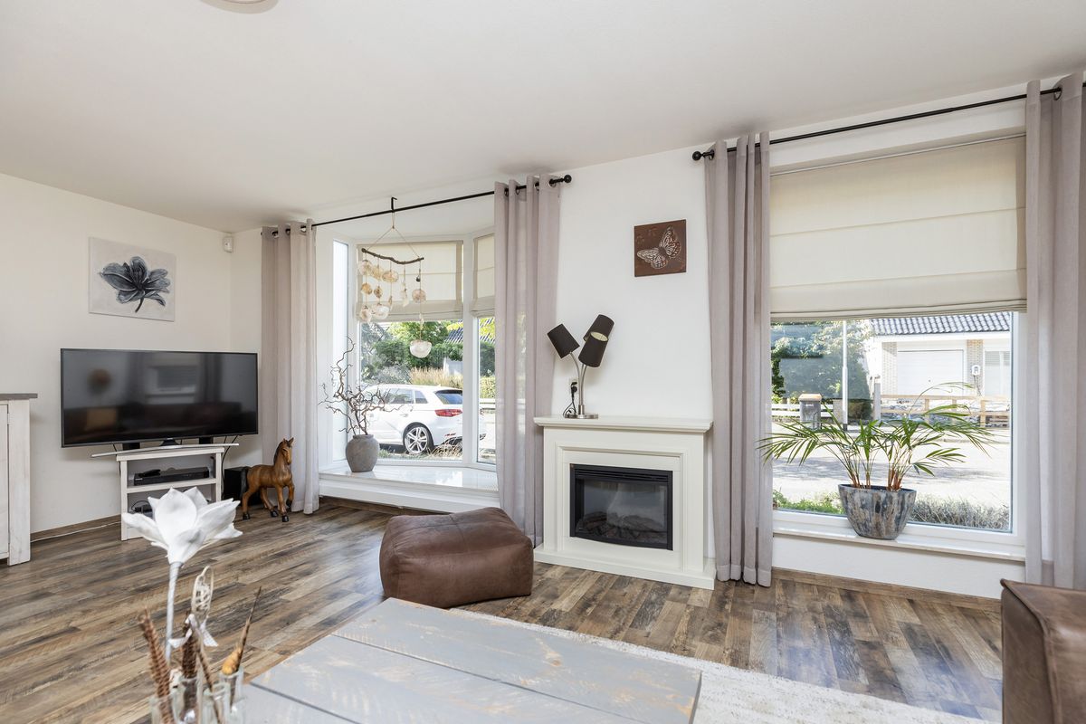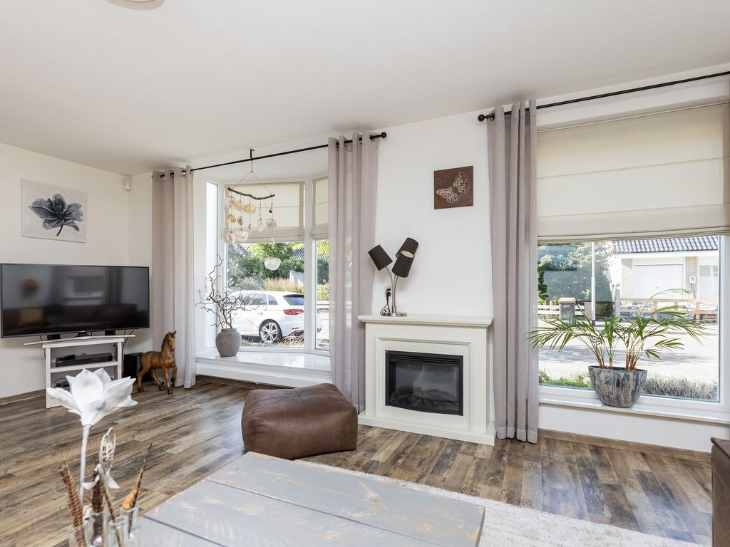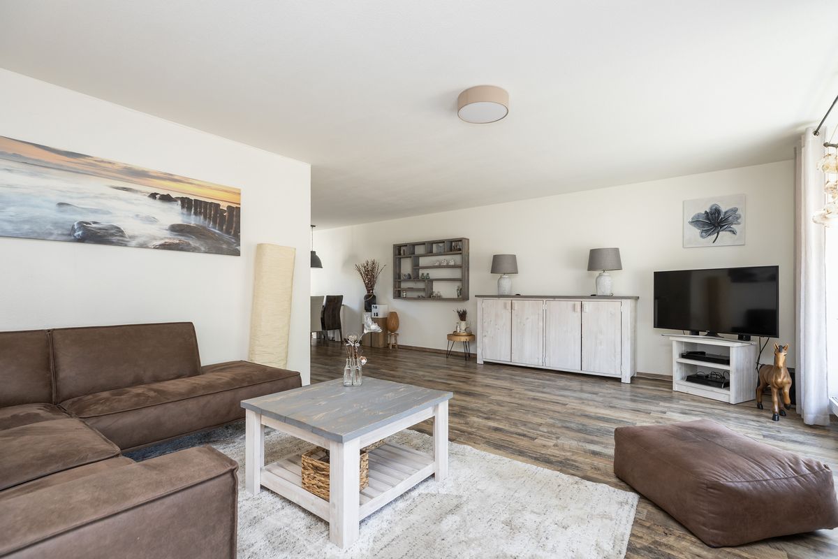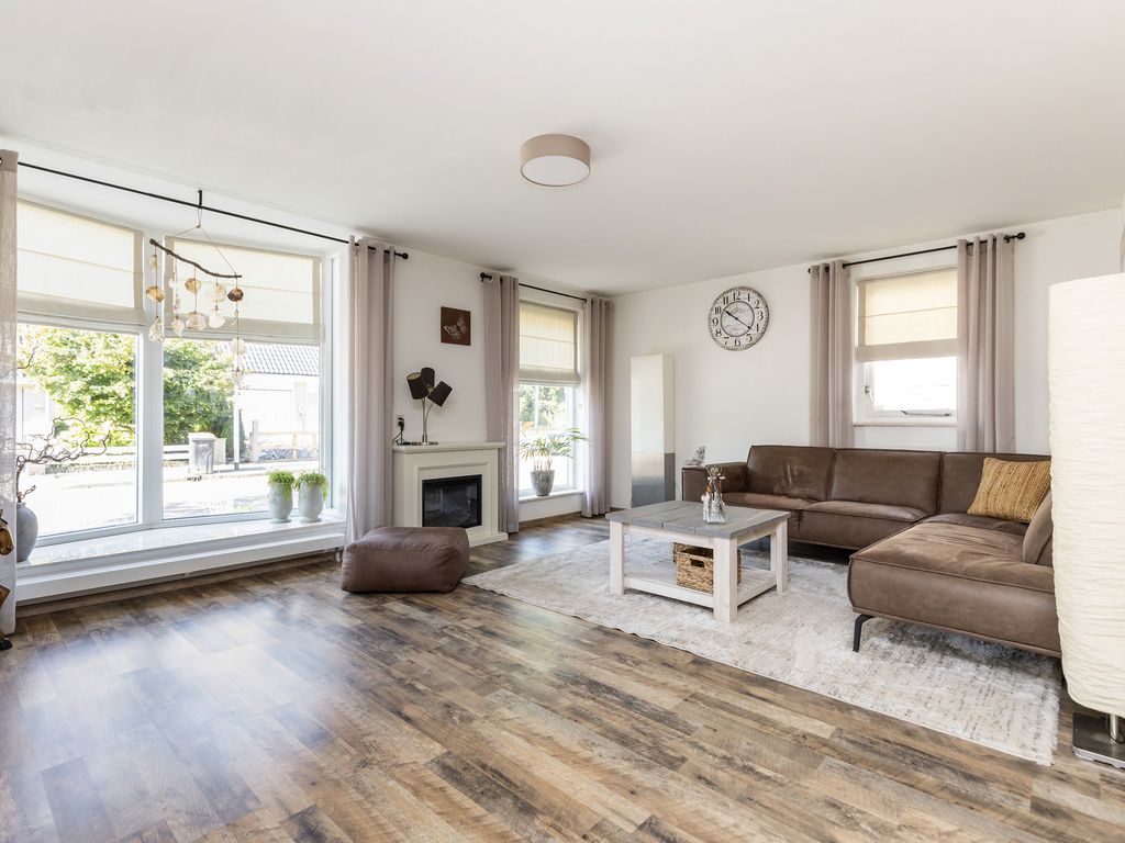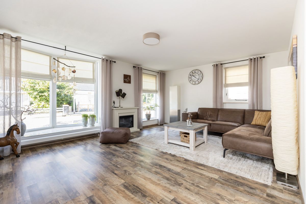 Vanuit de hal bereik je de royale L-vormige woonkamer van circa 46 m², inclusief de open keuken. De vele raampartijen zorgen voor een lichte en sfeervolle leefruimte.