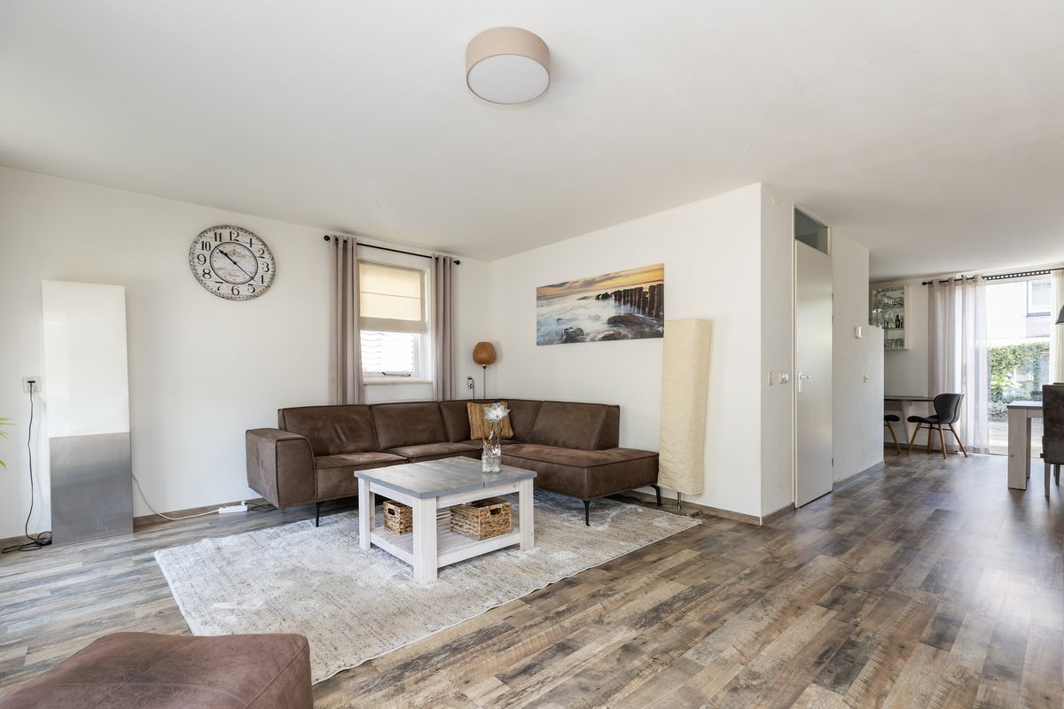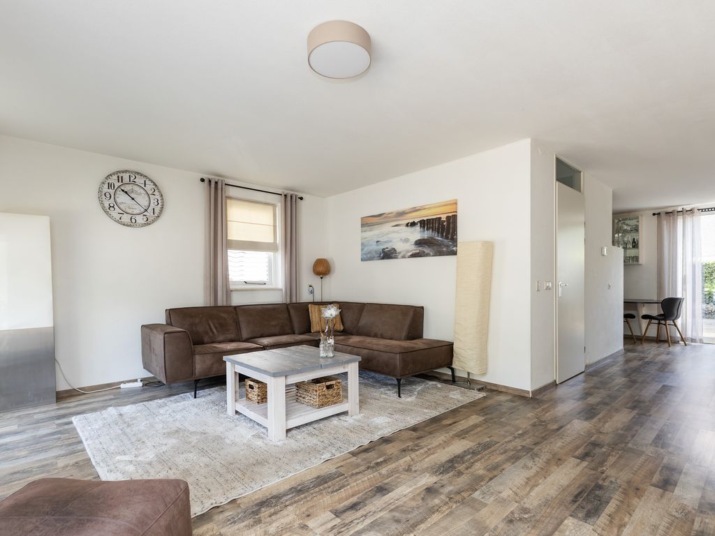 Vanuit de woonkamer is via een schuifpui de achtertuin te bereiken.