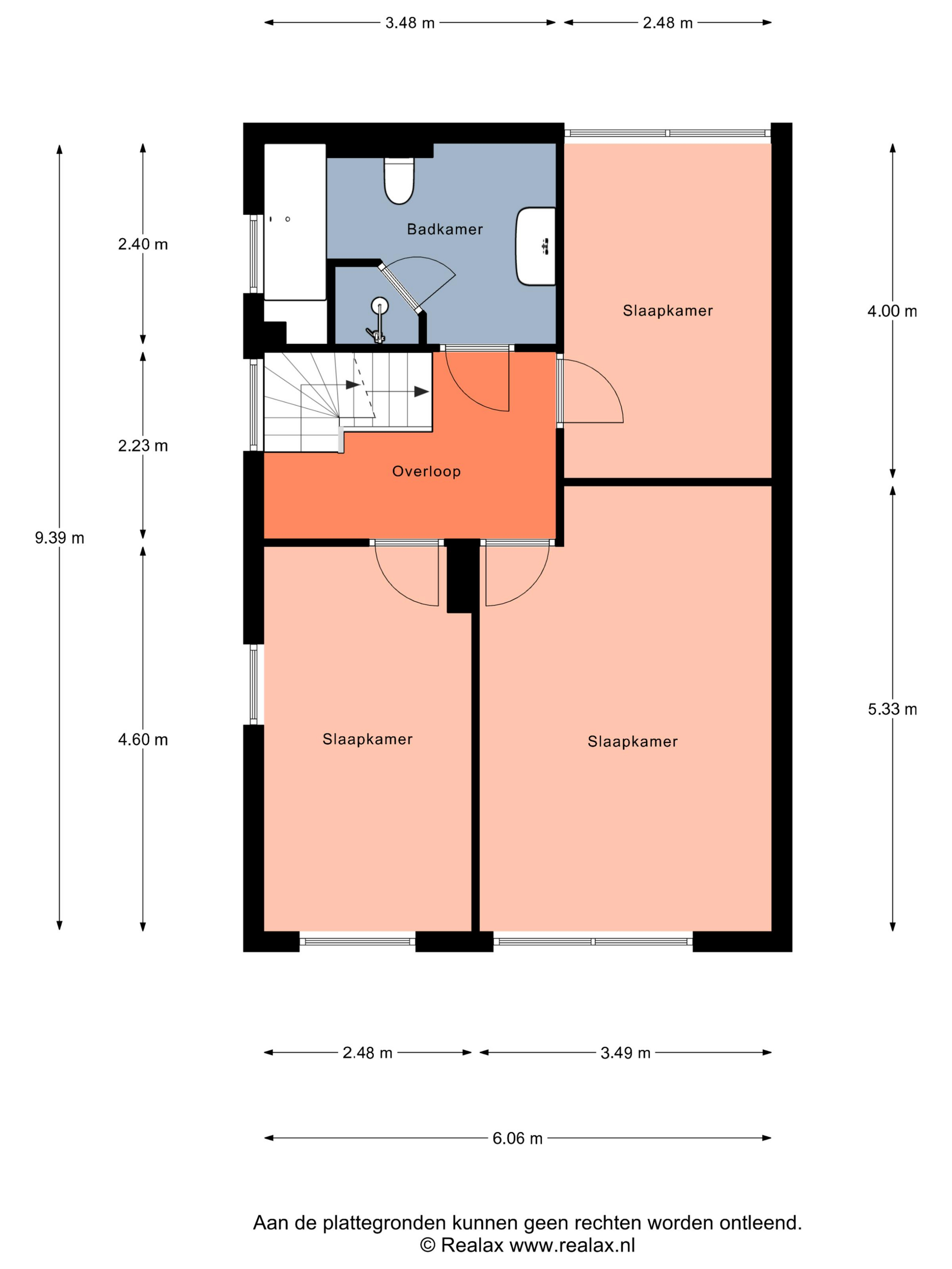 Slaapkamer 1 (voorzijde): circa 5,33 x 3,49 m.