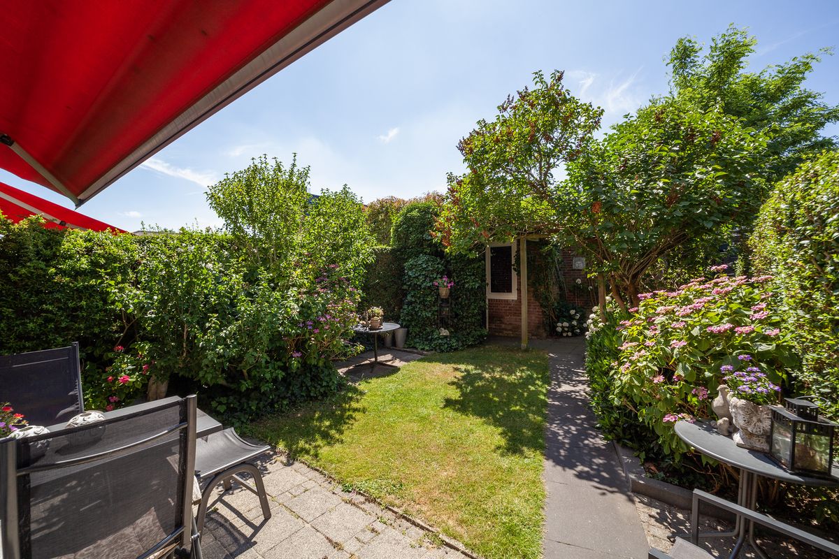 De achtertuin is circa 10 meter diep en 6 meter breed, gelegen op het zuidwesten — heerlijk zonnig dus! De tuin is keurig aangelegd en beschikt over een stenen berging met elektra.