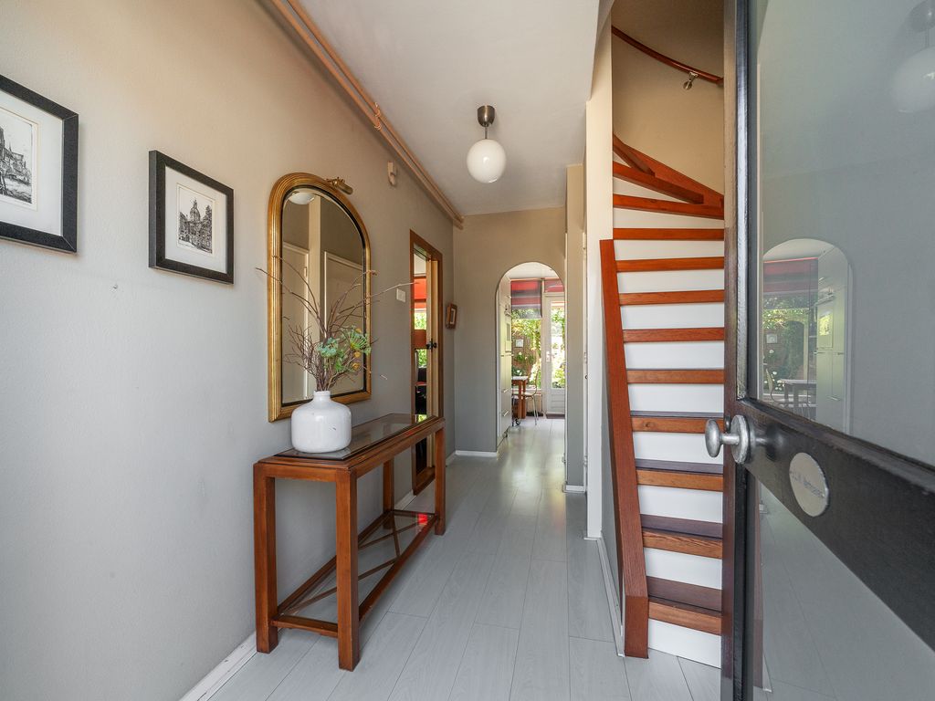 De trapopgang naar de eerste verdieping bevindt zich eveneens in de hal.