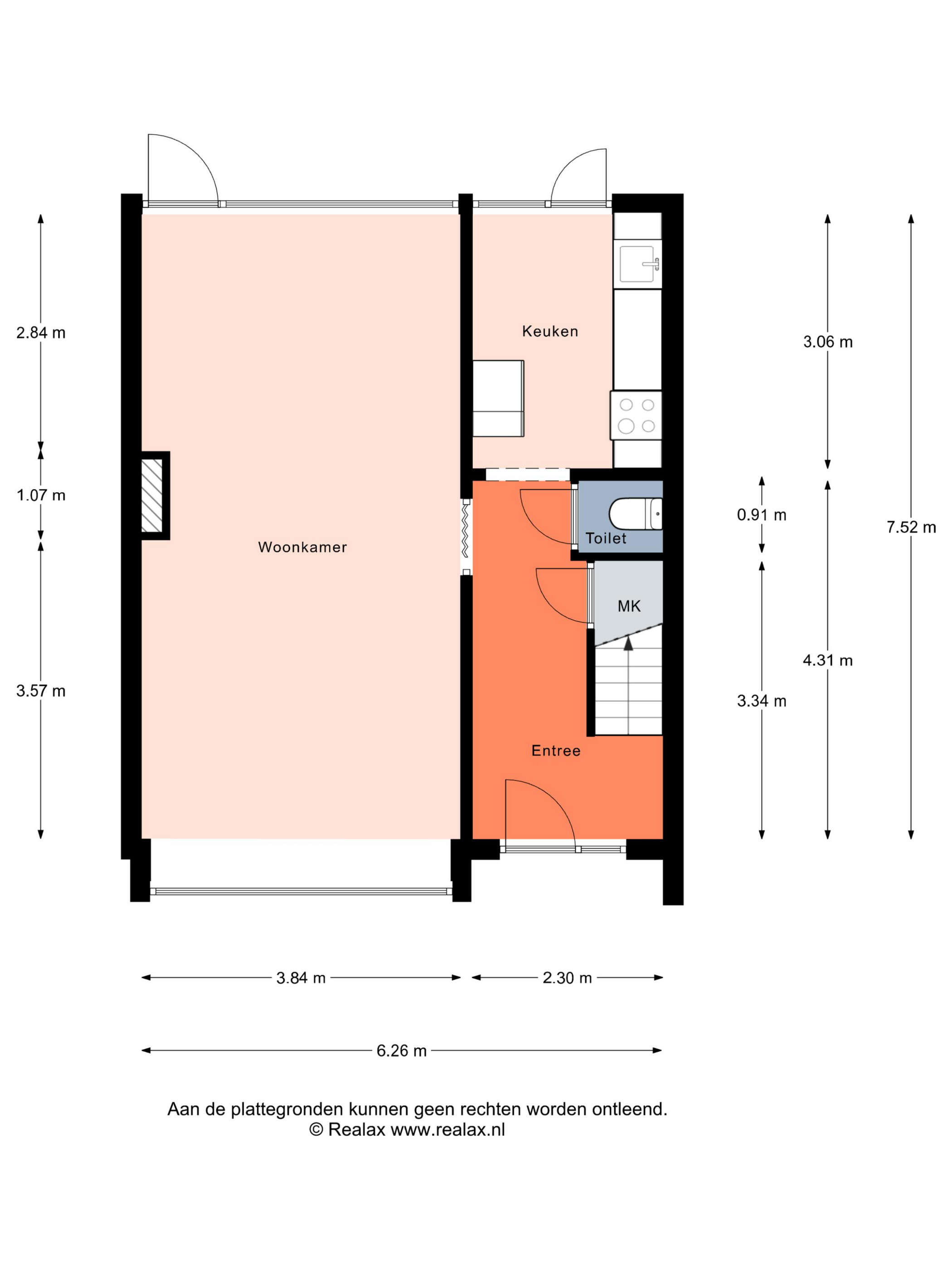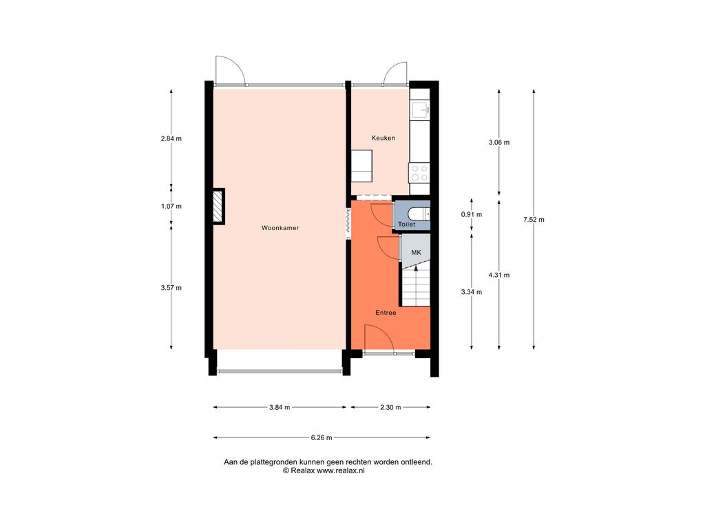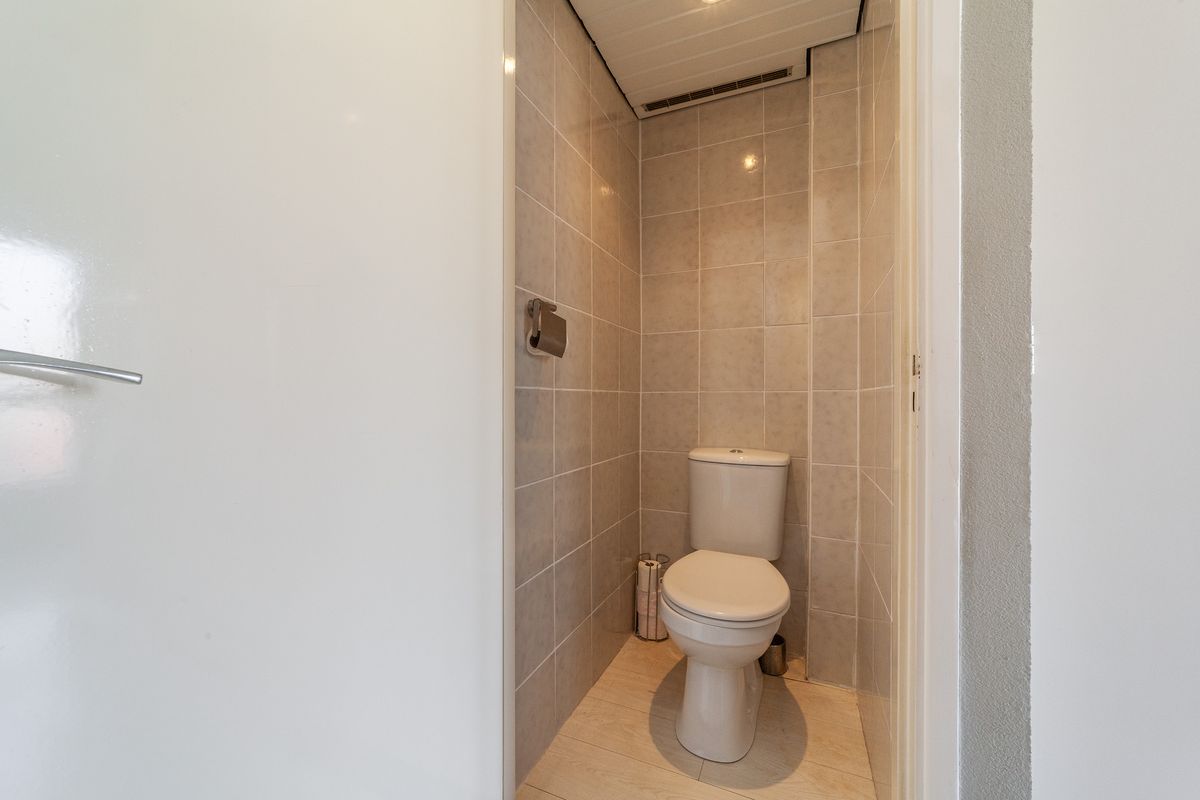 Bij binnenkomst kom je in een ruime hal met toegang tot de trapkast/meterkast en de toiletruimte.