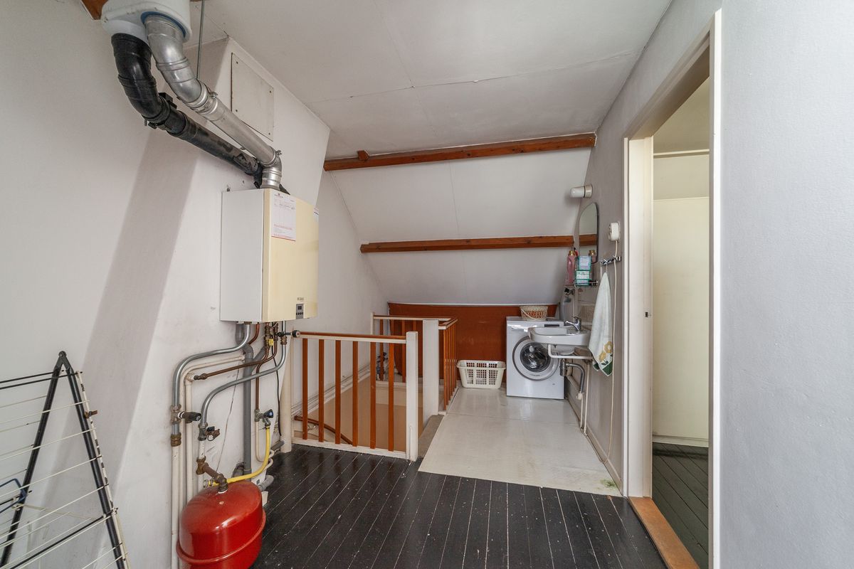 Op de overloop bevindt zich de aansluiting voor de wasmachine en de opstelplaats van de cv-ketel (Remeha 2009).