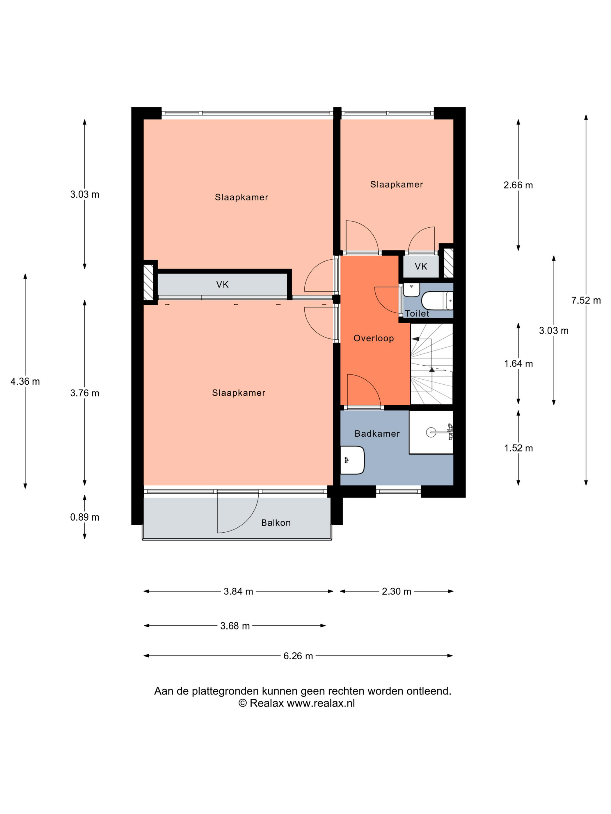 Slaapkamer 3 (achterzijde): circa 2,66 x 2,30 m.