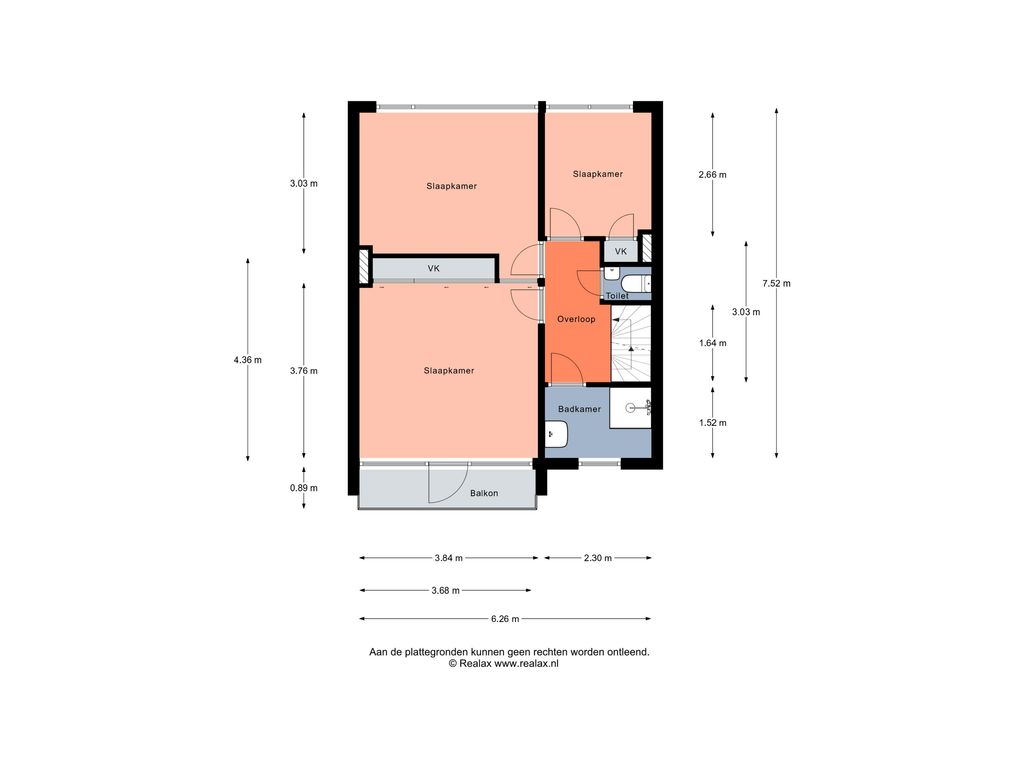Slaapkamer 2 (achterzijde): circa 3,03 x 3,84 m.