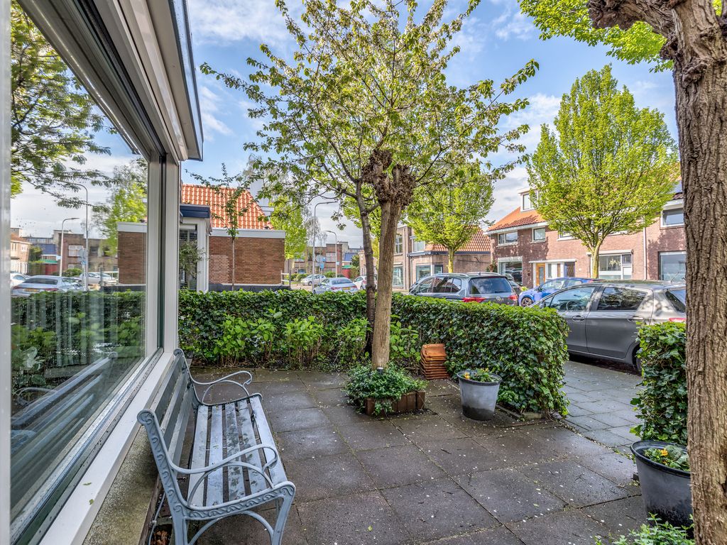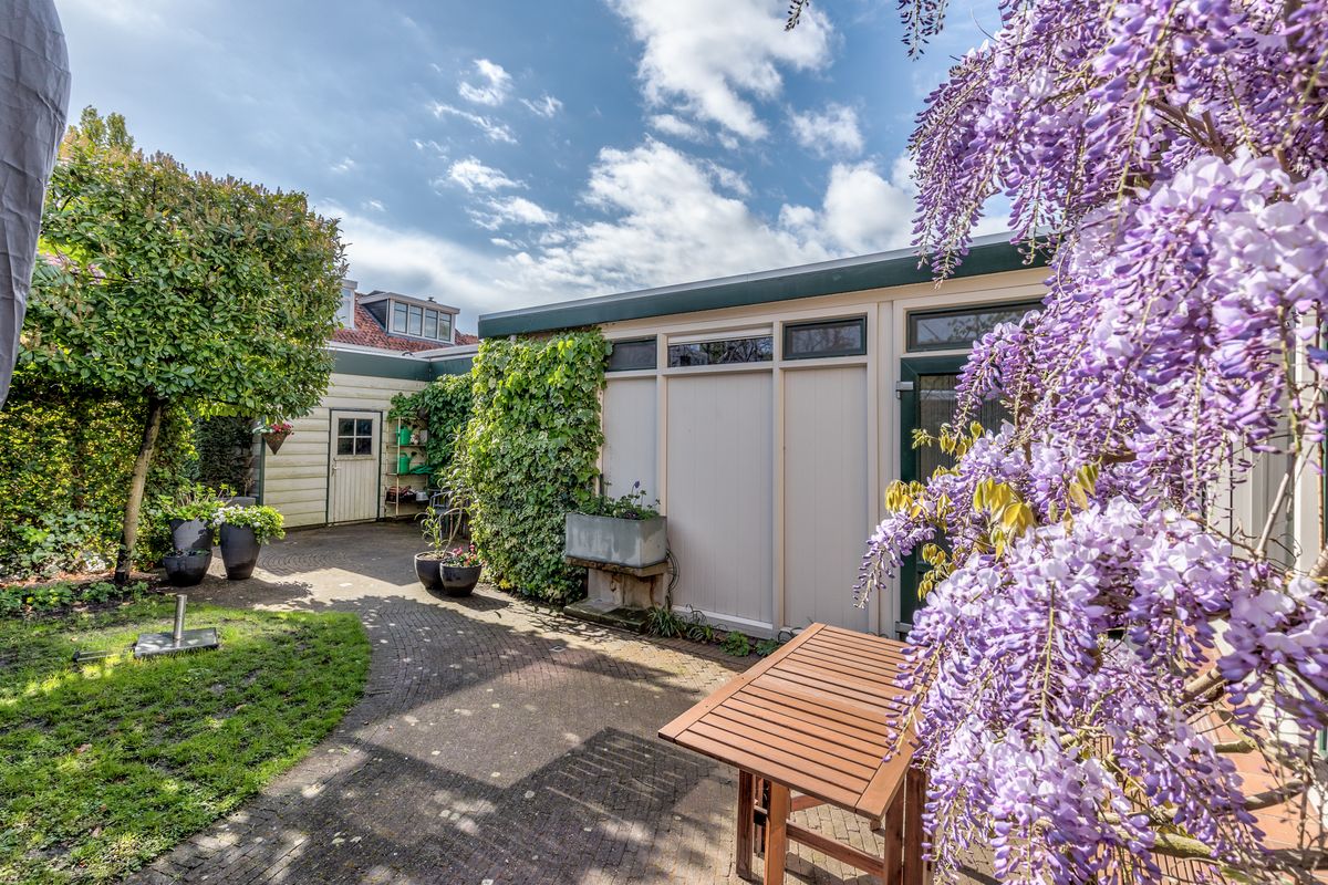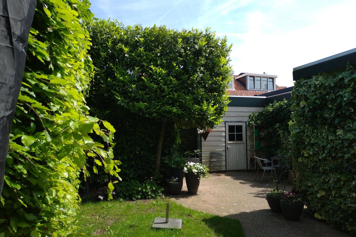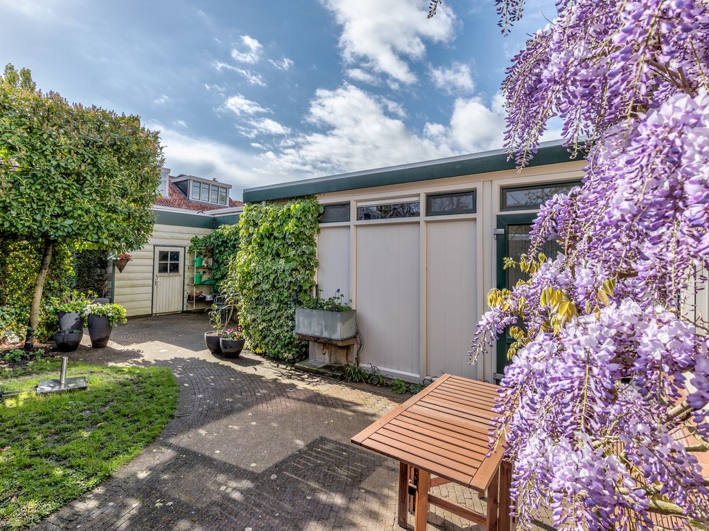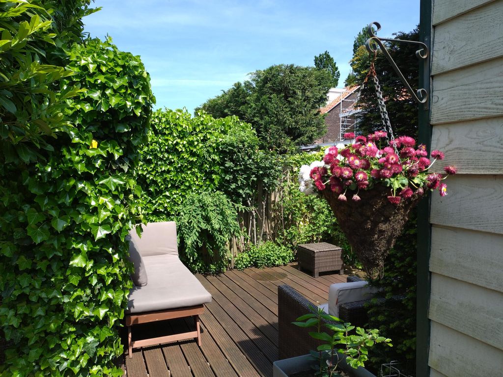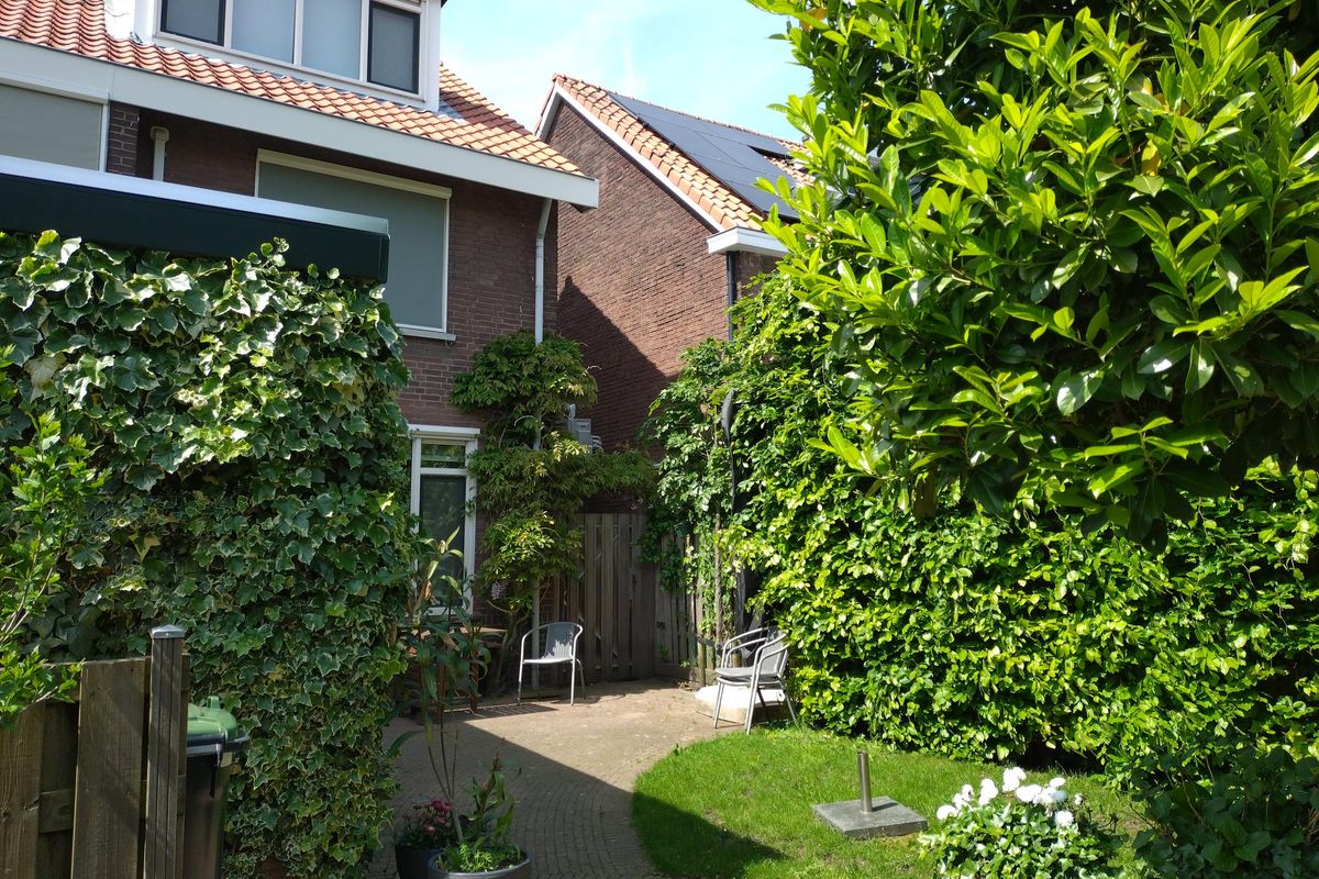 De brede en diepe achtertuin is gelegen op het zuidoosten en maar liefst 13 meter diep en 7 meter breed. Op diverse plekjes kan je in de zon of schaduw ontspannen genieten van een kopje koffie of een zomerse barbecue. De tuin beschikt rondom over sierbestrating, fruitbomen en -struiken en de beplanting geeft veel privacy. De tuin is desondanks onderhoudsvriendelijk en blijft vrijwel het jaar rond groen. In de avond en nacht worden de bomen in de voor- en achtertuin sfeervol verlicht en blijft de tuin ook in de donkere uren een verlengstuk van de huiskamer.