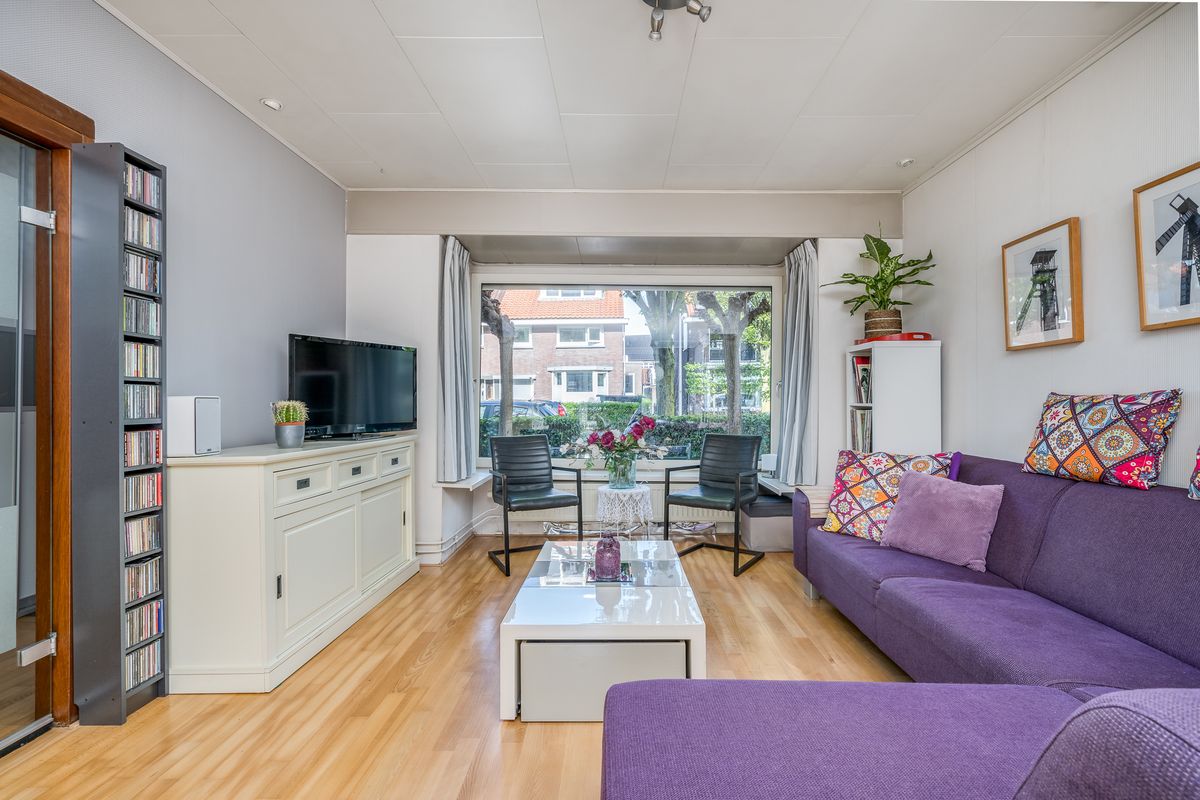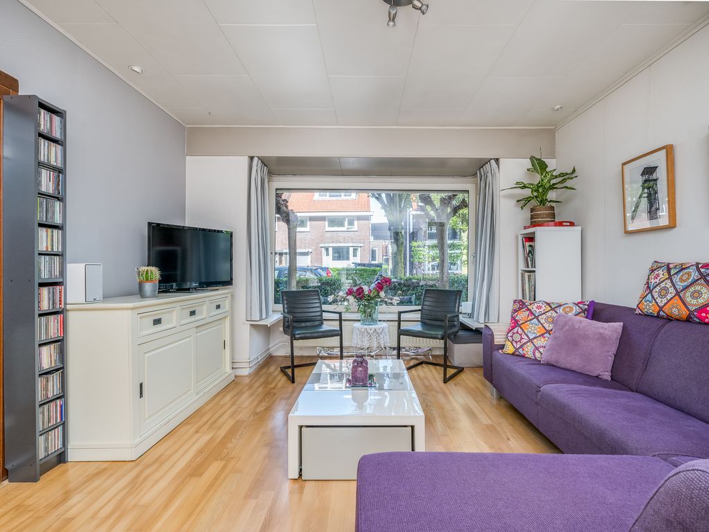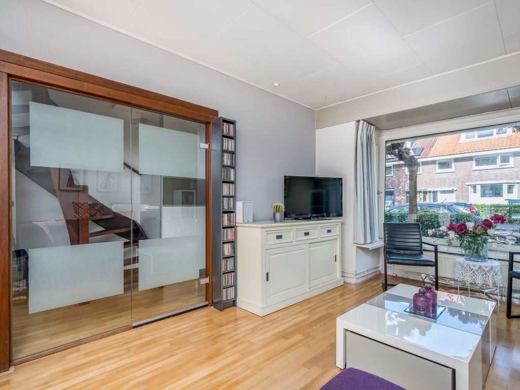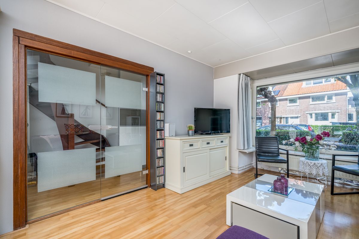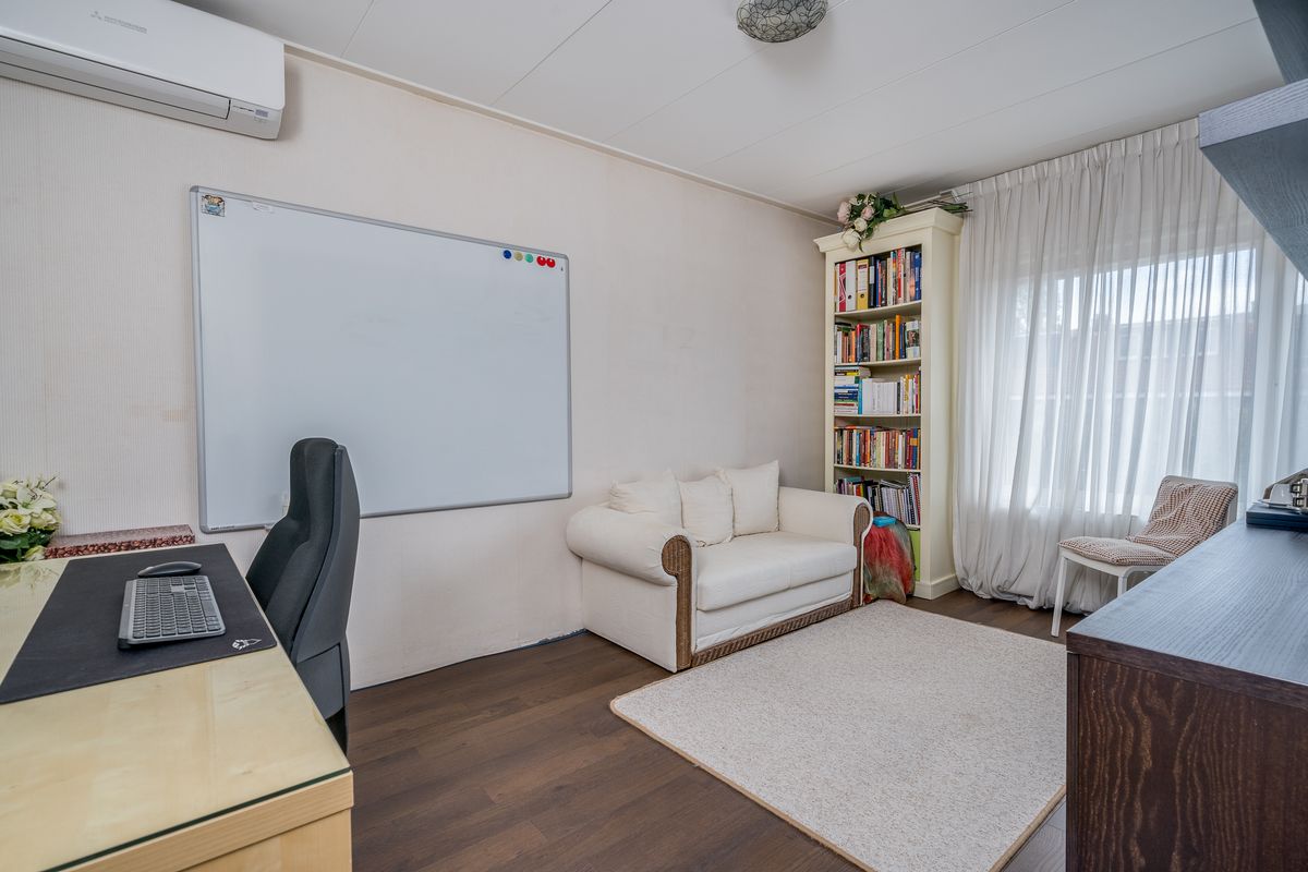 De royale doorzon woonkamer met erkerraam aan de voorzijde heeft een prettige sfeer dankzij veel natuurlijk lichtinval. De keuken is gelegen aan de achterzijde van de woning en is middels glazen schuifdeuren af te sluiten van de woonkamer. Dit zorgt voor een rustig beeld en een ruimtelijk gevoel. De temperatuur wordt gecontroleerd door de airco en alle ramen zijn voorzien van zonneschermen en horren.