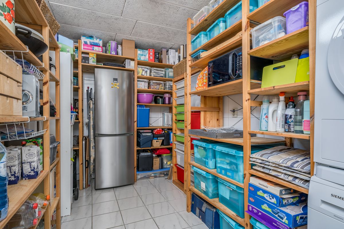 De geheel betegelde bijkeuken is voorzien van de aansluiting voor de was-apparatuur en heeft veel opbergmogelijkheden.
