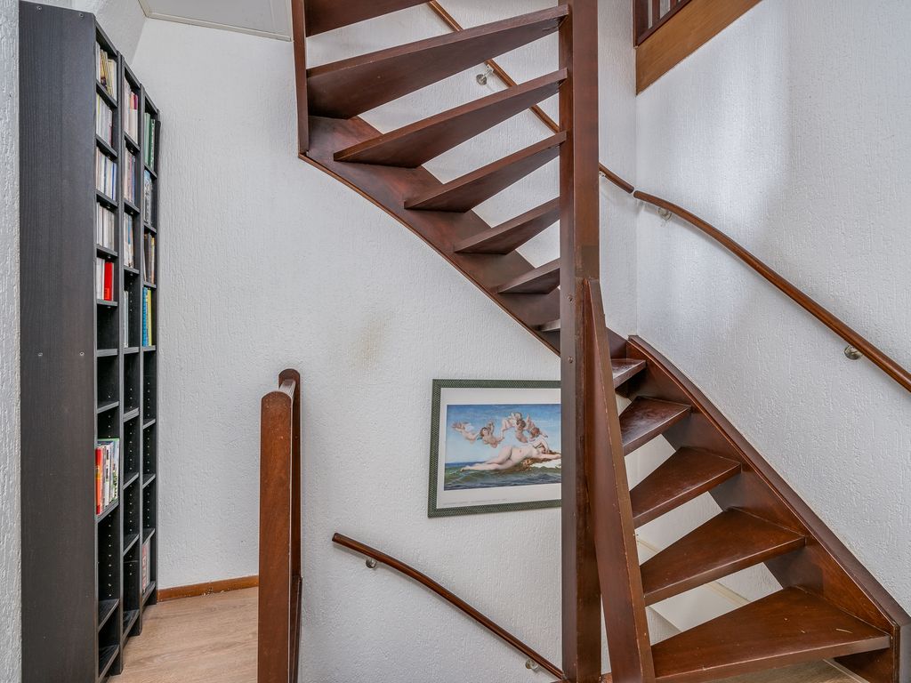 Via de voordeur kom je binnen in de ruime hal met kastruimte, waar je toegang hebt tot het vergrote toilet en de meterkast. De vloer is voorzien van parket, dat doorloopt in de huiskamer, die je via een brede glazen deur betreedt.
