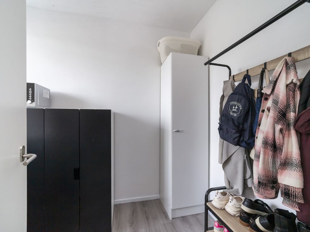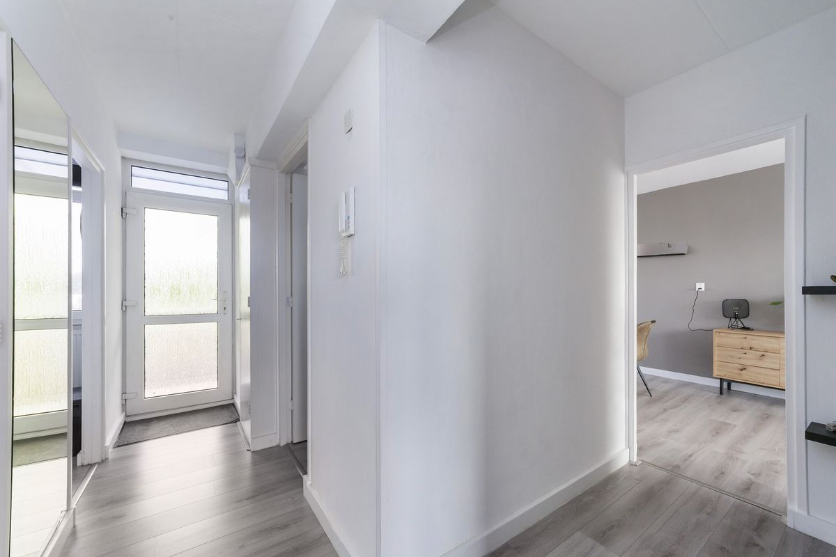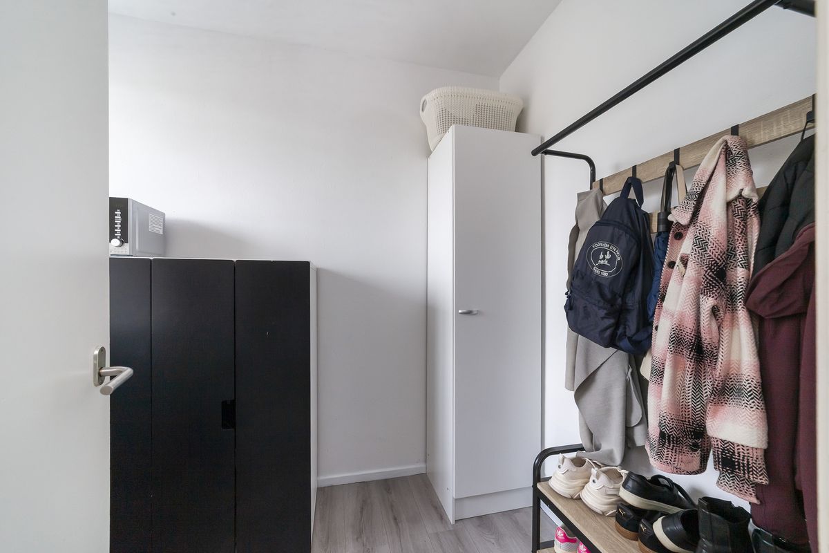 Hal met garderobe, meterkast en toegang tot alle vertrekken.