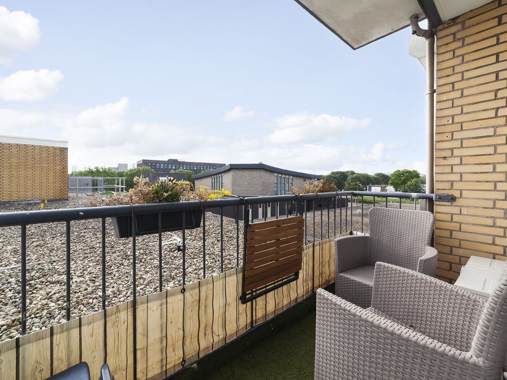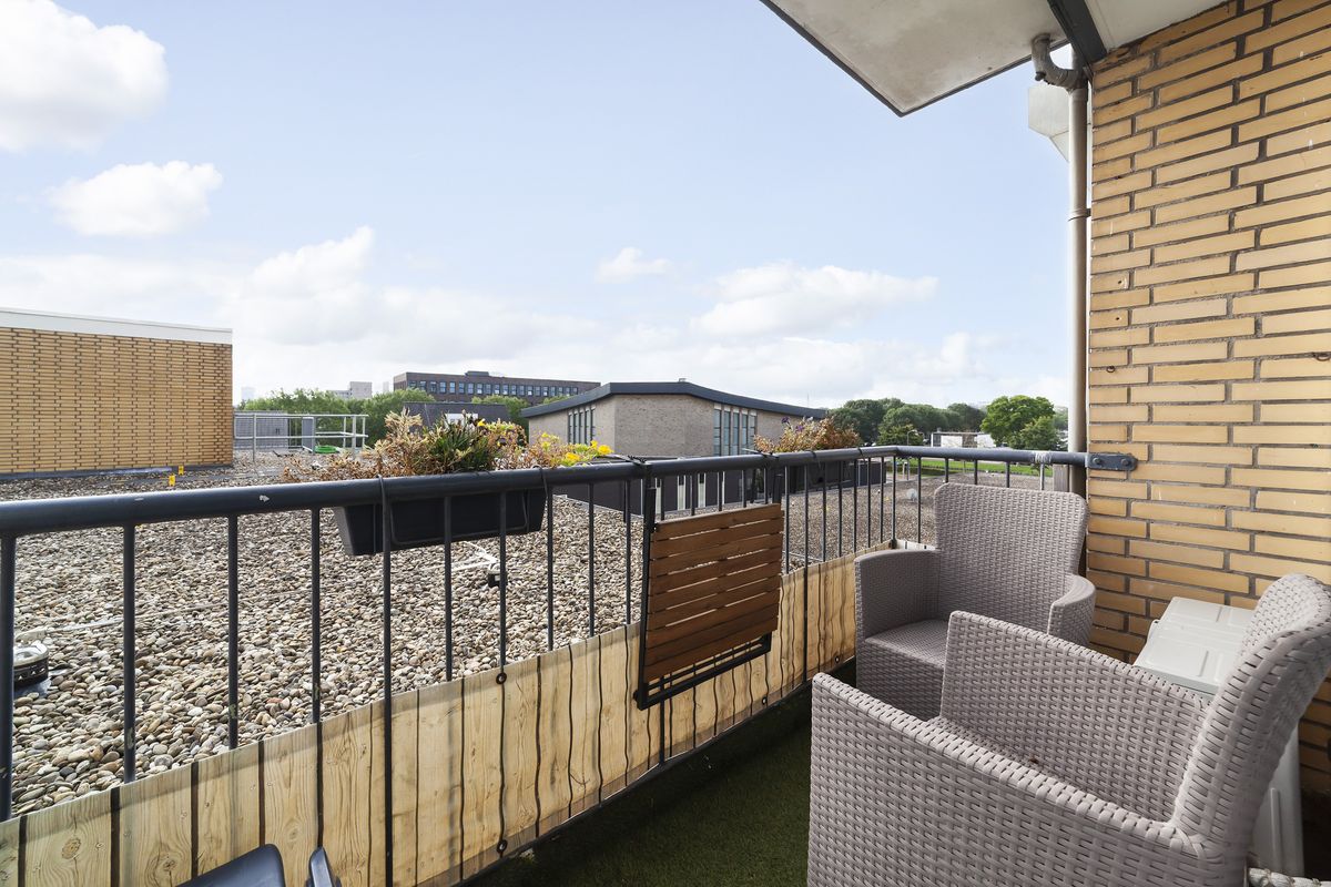 Het ruime balkon ligt op het zuidoosten, waardoor je hier al in de ochtend en tot in de middag lekker kunt genieten van de zon.