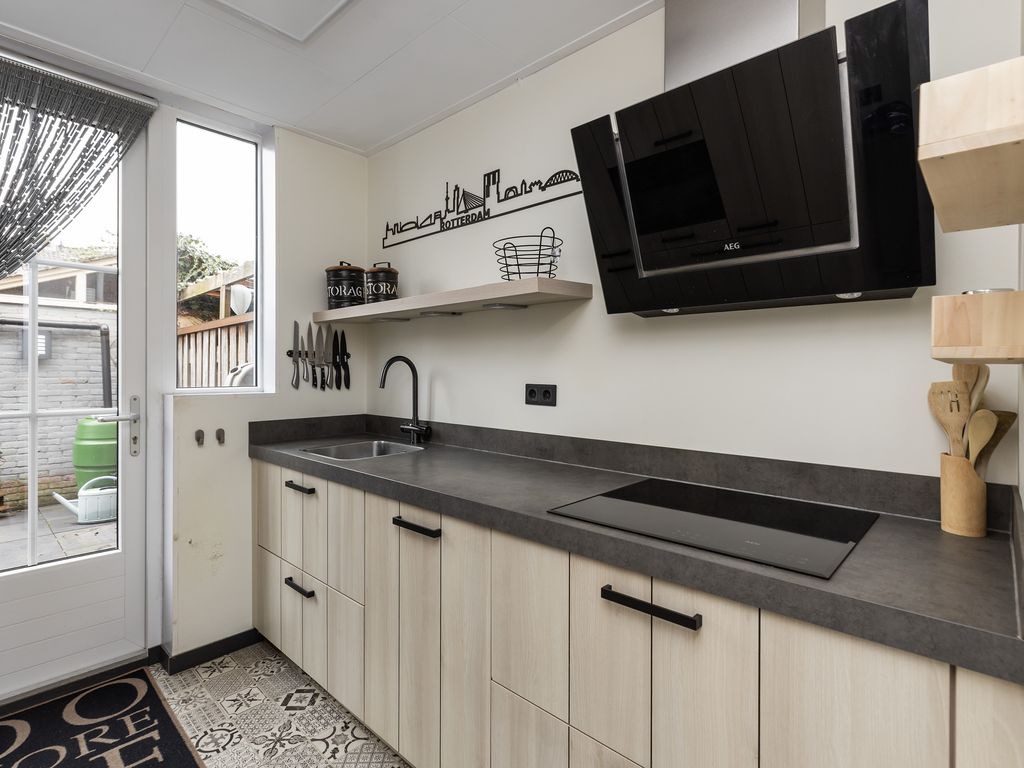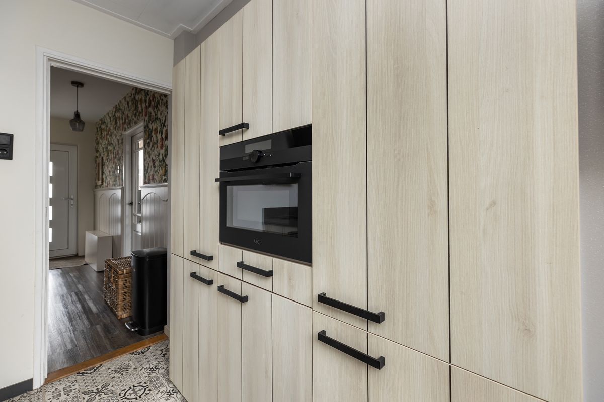 Deze is uitgevoerd met een inductiekookplaat, afzuigkap, vaatwasser, combi-oven, koelkast, vriezer en een Quooker.