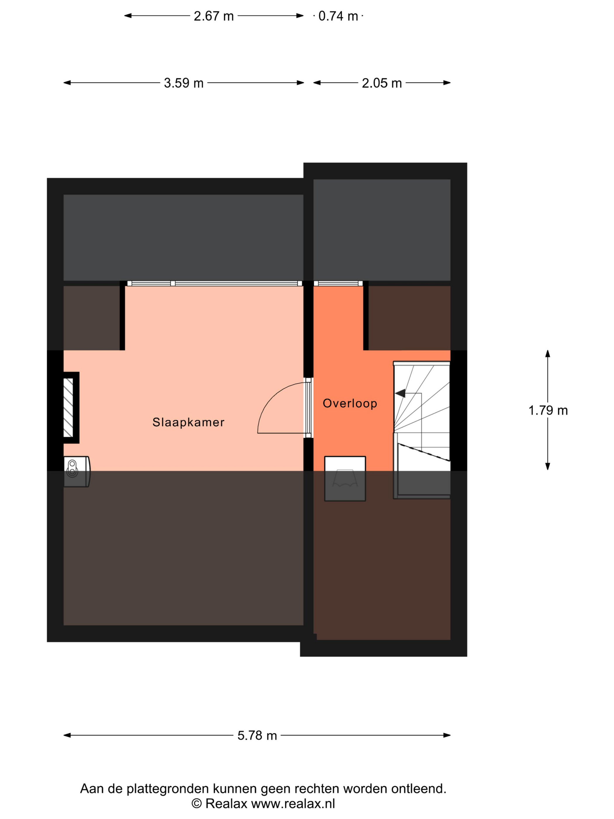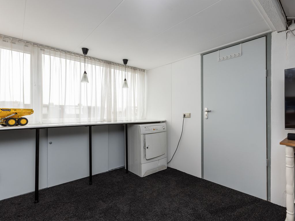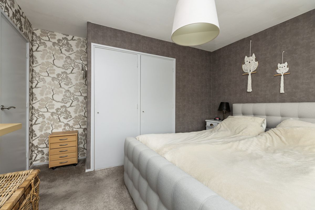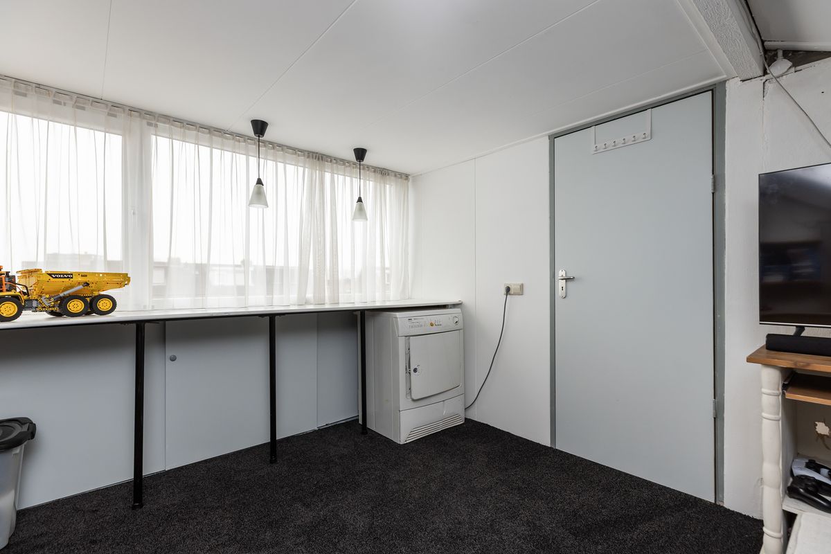 Hoewel de hoogte iets lager is dan 2 meter en daardoor niet wordt meegerekend als woonoppervlakte, is deze ruimte uitstekend te gebruiken als slaapkamer.