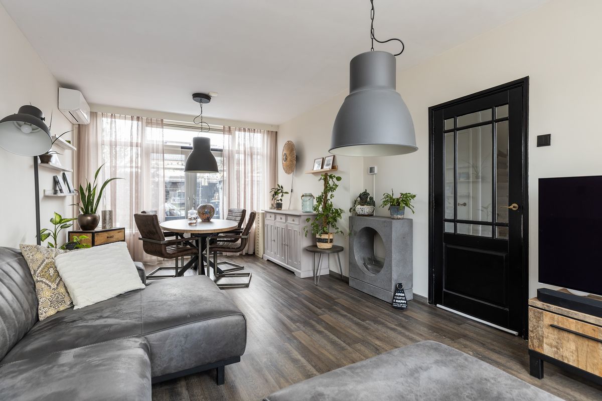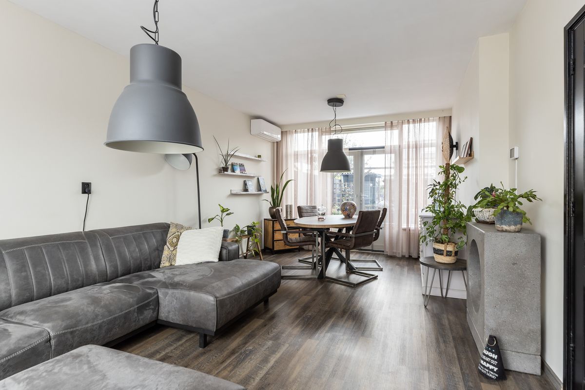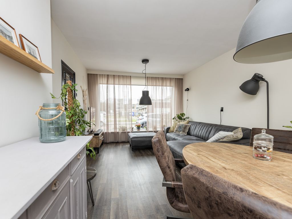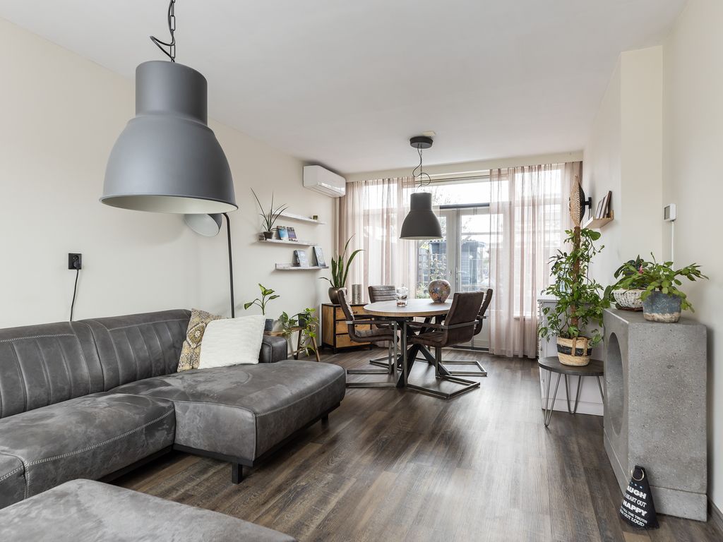 De doorzonwoonkamer is een heerlijke lichte leefruimte dankzij de grote raampartijen aan zowel de voor- als achterzijde. De woonkamer heeft een afmeting van circa 6,44 x 3,58 m (deels 3,35 m) en is voorzien van een laminaatvloer en airconditioning, wat zorgt voor extra comfort in zowel zomer als winter.