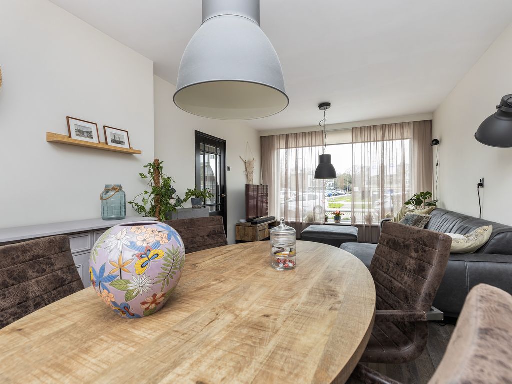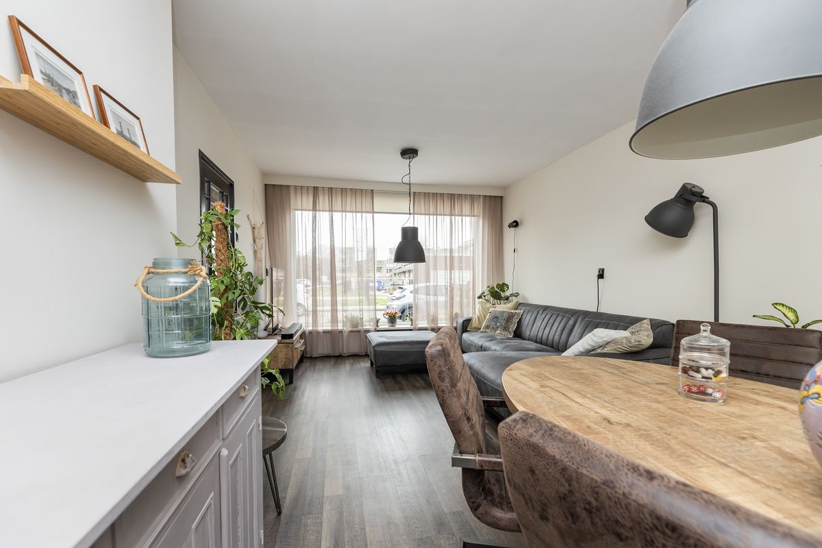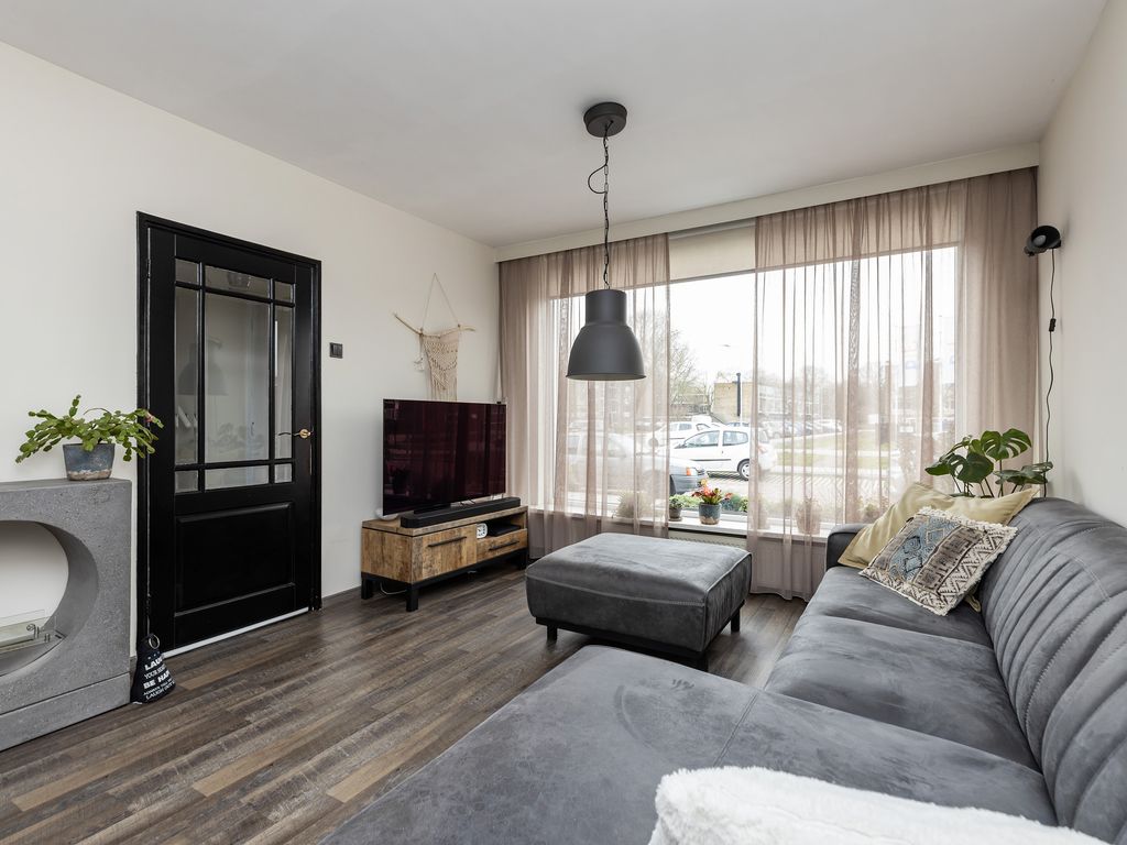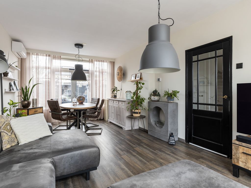 De doorzonwoonkamer is een heerlijke lichte leefruimte dankzij de grote raampartijen aan zowel de voor- als achterzijde. De woonkamer heeft een afmeting van circa 6,44 x 3,58 m (deels 3,35 m) en is voorzien van een laminaatvloer en airconditioning, wat zorgt voor extra comfort in zowel zomer als winter.