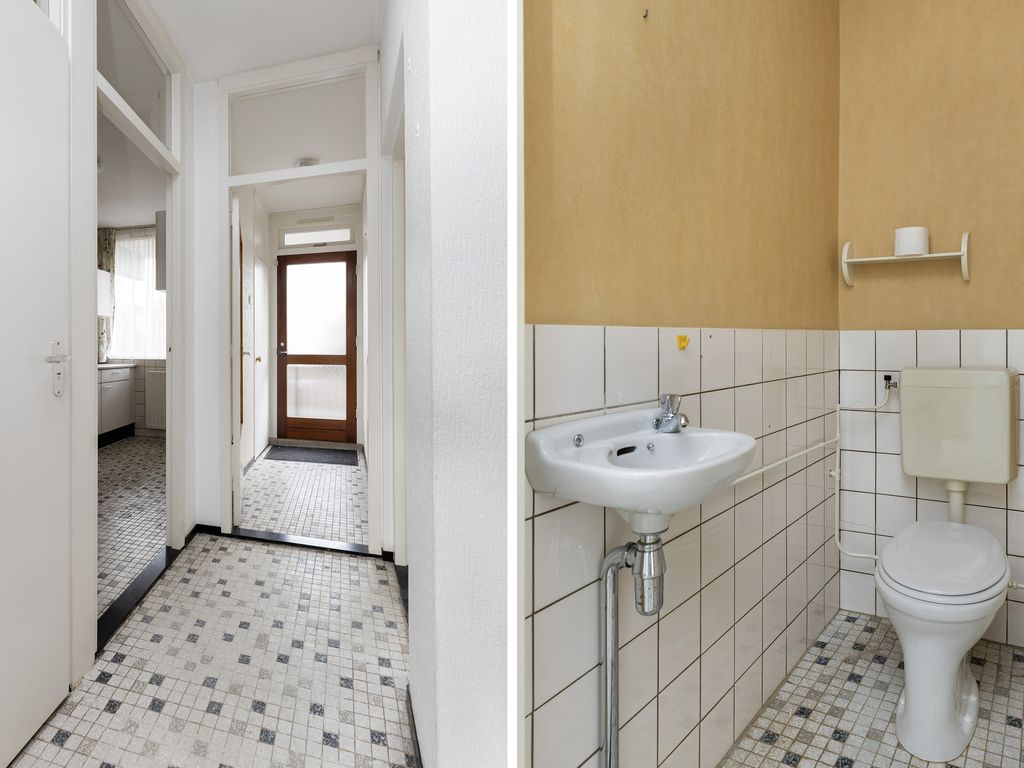 Gedeeltelijk licht betegeld voorzien van een fonteintje en separaat van de badkamer.