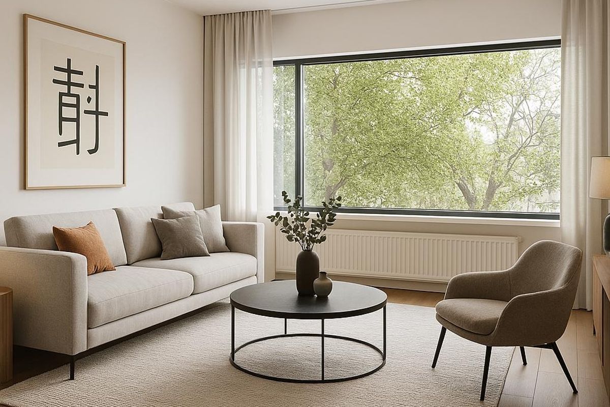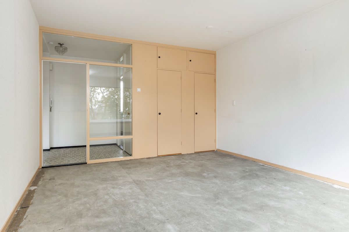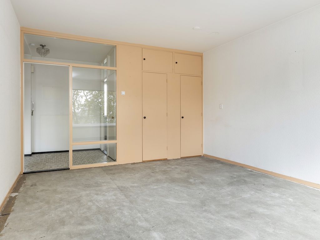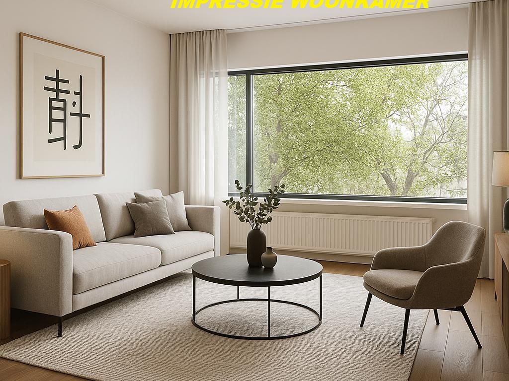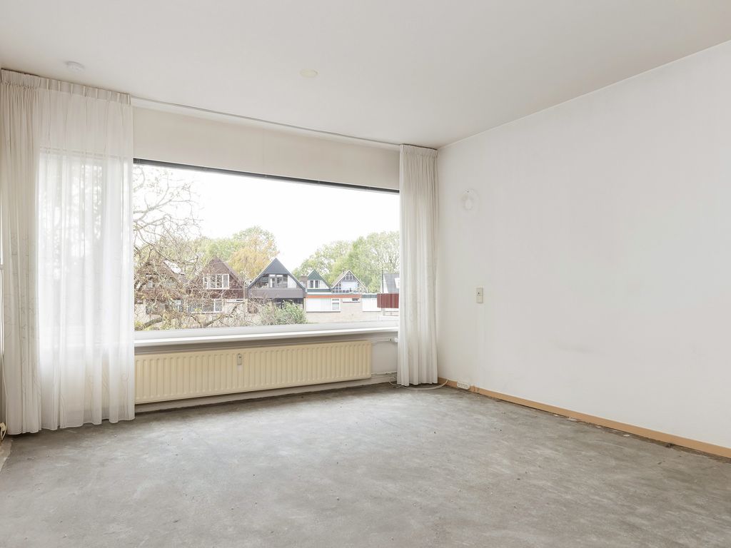 De ruime woonkamer (ca. 5,45 x 4,00 m) ligt aan de achterzijde van het appartement en heeft een prettig uitzicht op de omgeving. De woonkamer is voorzien van inbouwkasten.