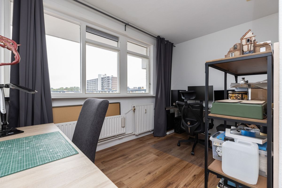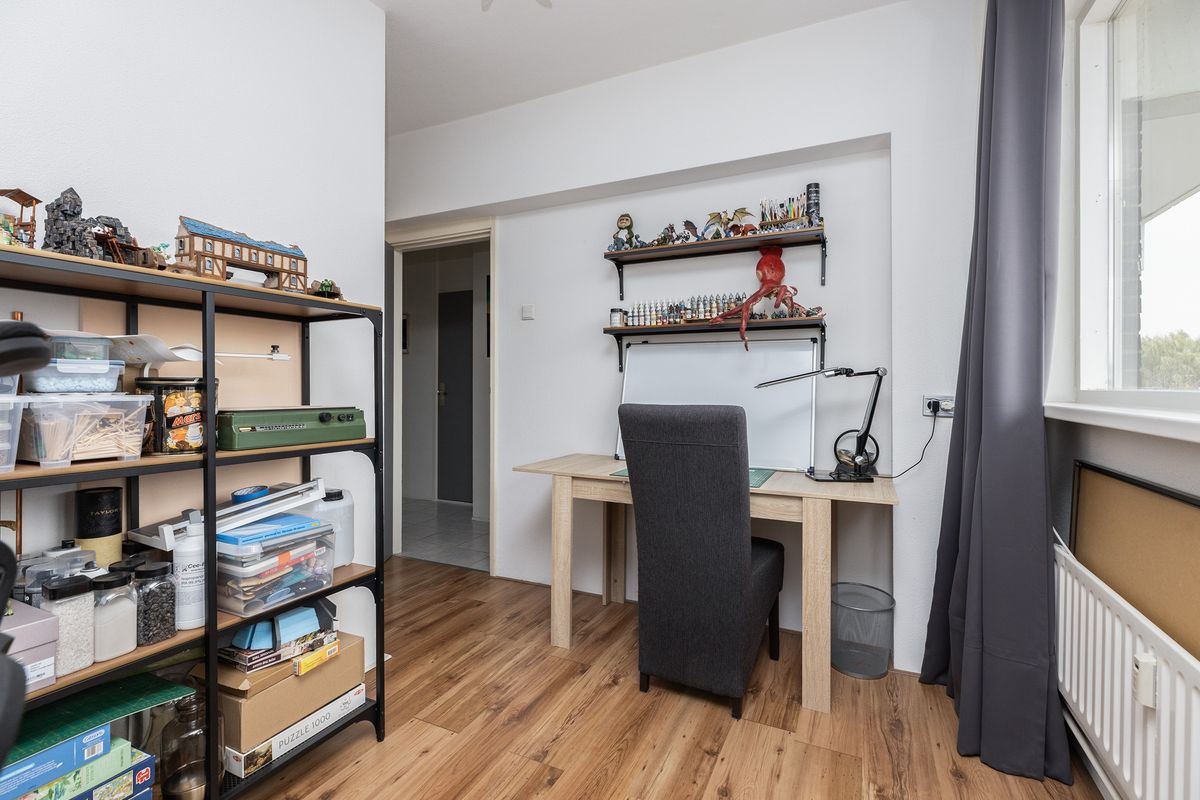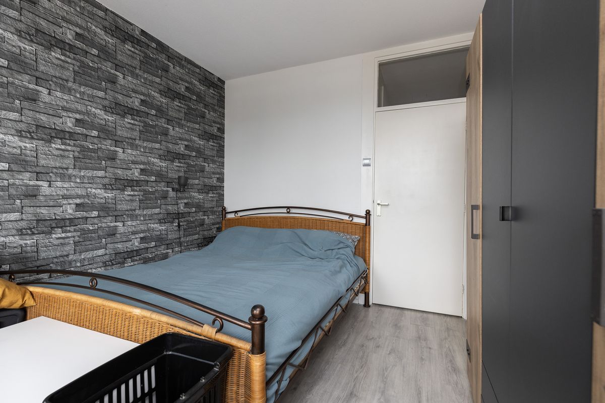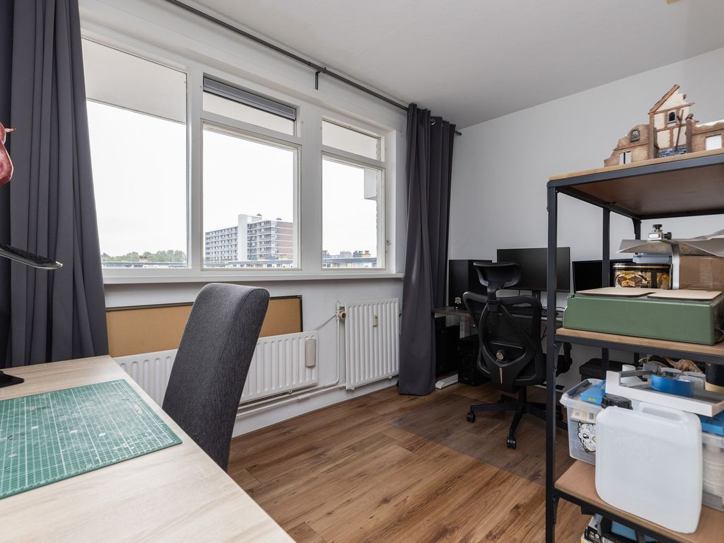 De tweede slaapkamer (ca. 2,33 x 3,85 m) is gelegen aan de galerijzijde. en is ontstaan door het samenvoegen van twee kamers. Beide kamers zijn voorzien van laminaatvloeren.