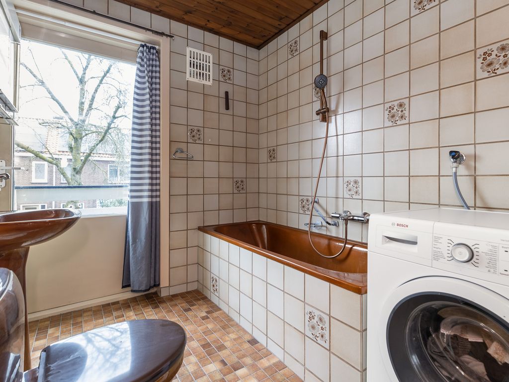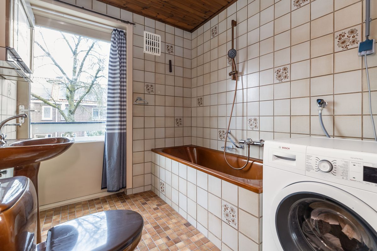 De badkamer heeft een afmeting van circa 2,32 x 2,03 m en is voorzien van een ligbad, toilet, wastafel en aansluiting voor de wasmachine.