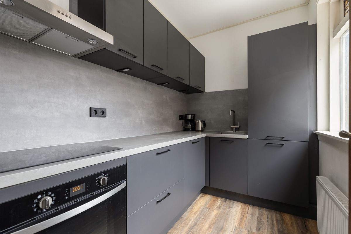De keuken is uitgevoerd in een moderne hoekopstelling en vernieuwd in 2023.