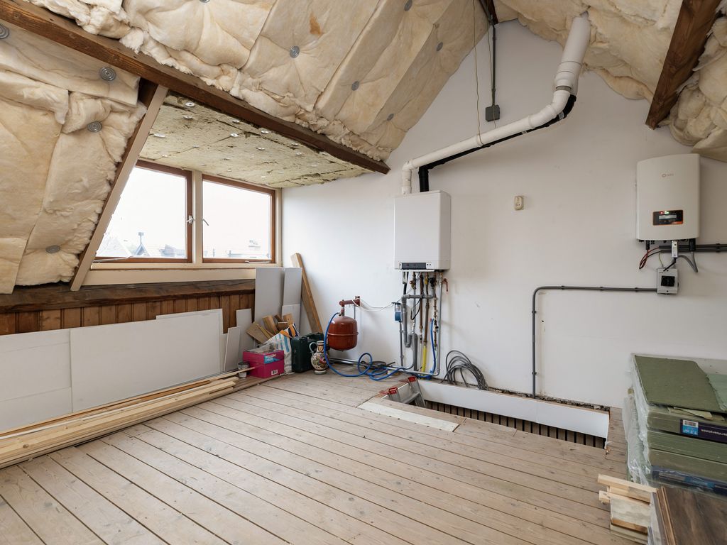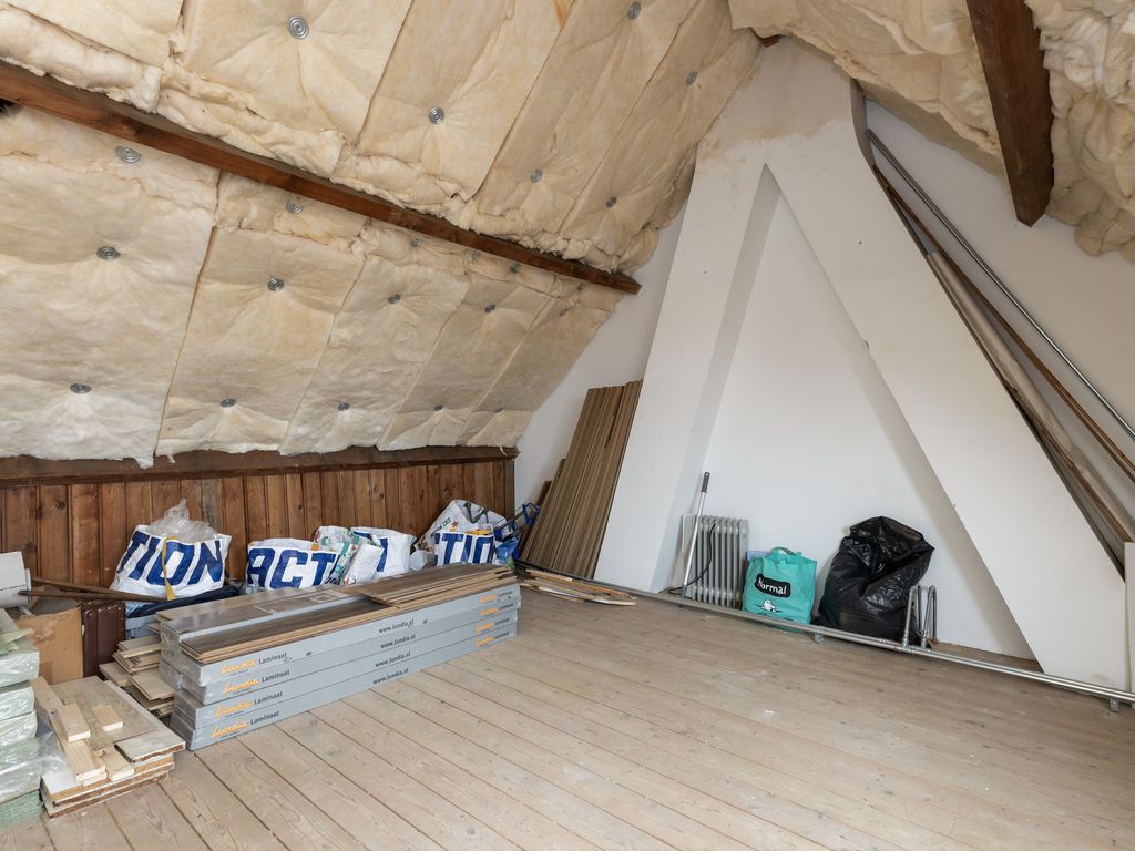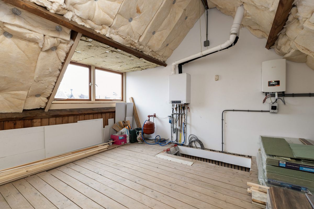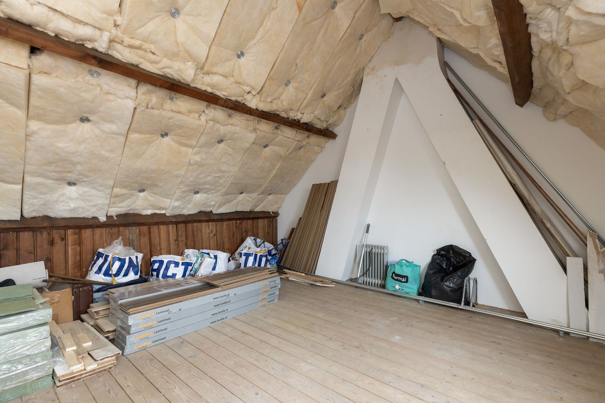 De zolder is geïsoleerd en biedt volop mogelijkheden voor het realiseren van een extra slaapkamer door het plaatsen van een vaste trap.