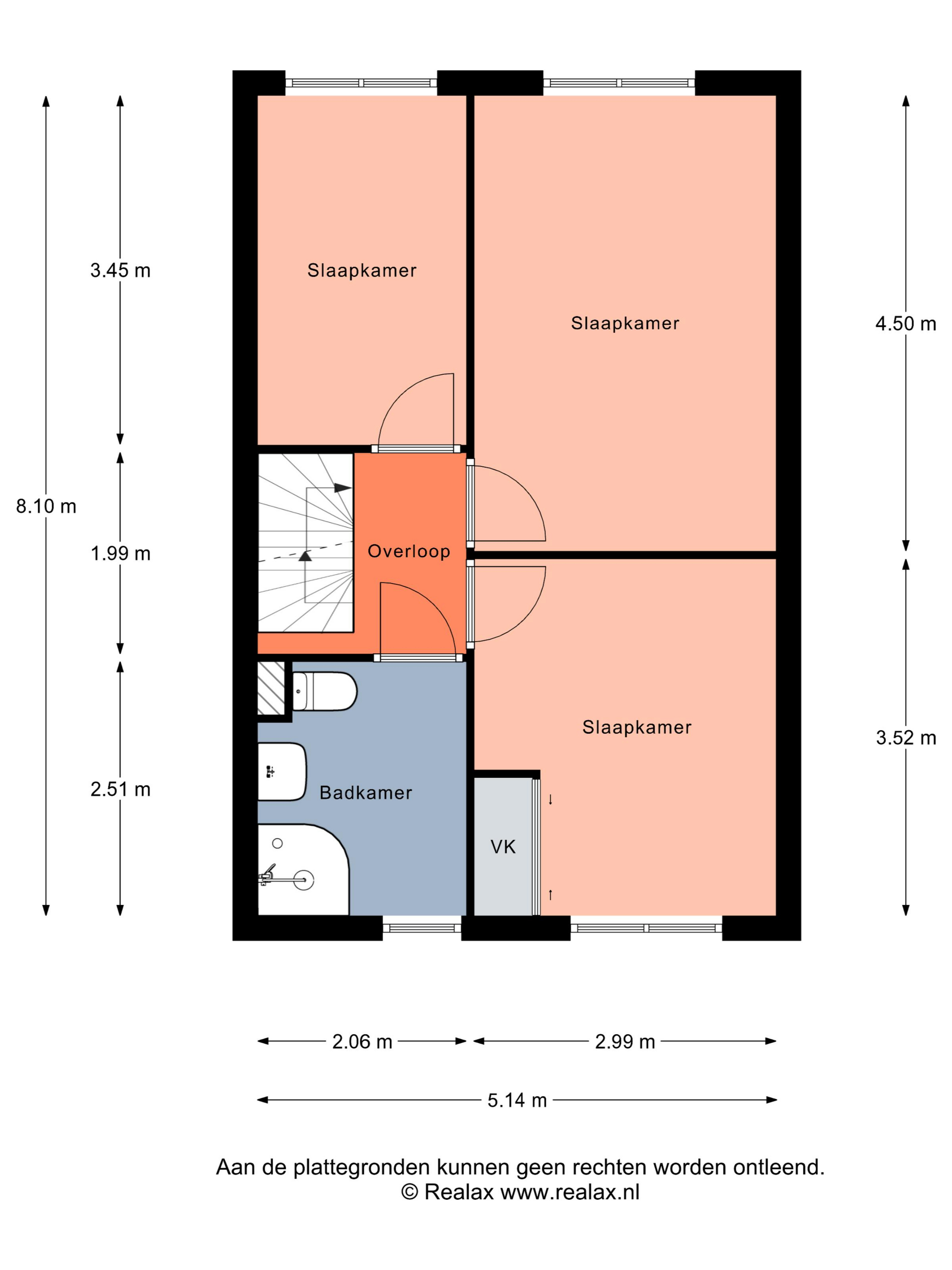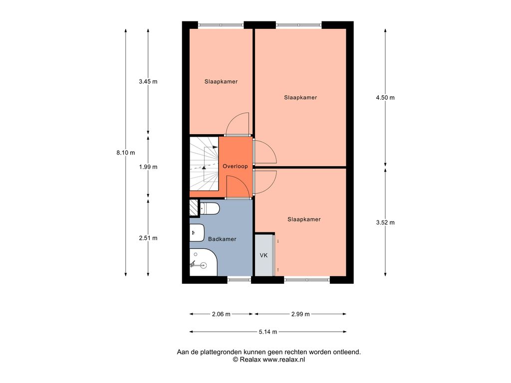 Deze heeft een afmeting van ca 2,51 x 2,06 m.