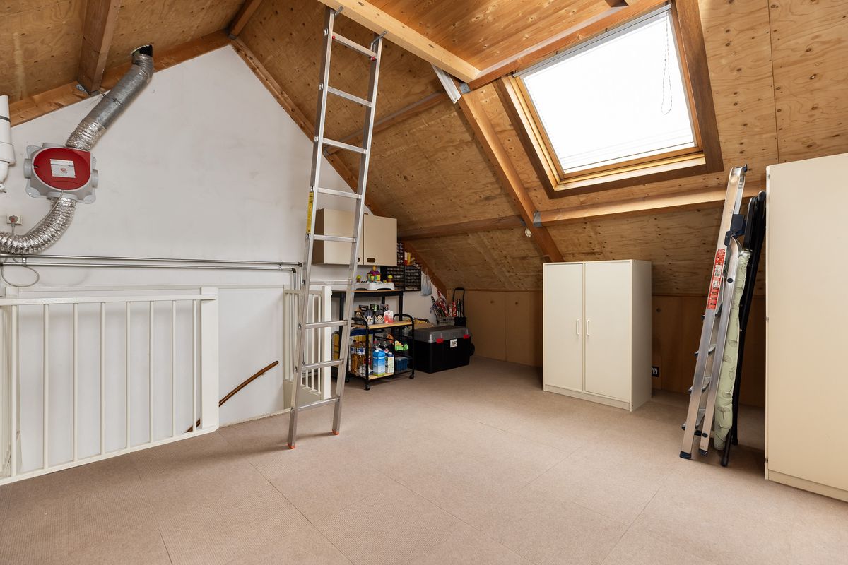Via een losse trap is er een zolderberging te bereiken.