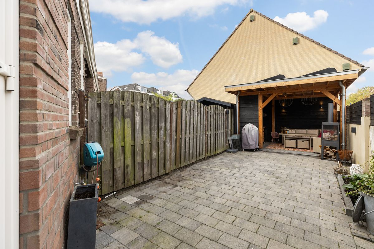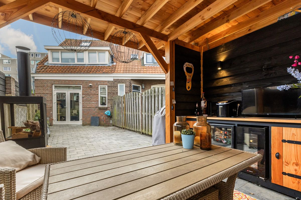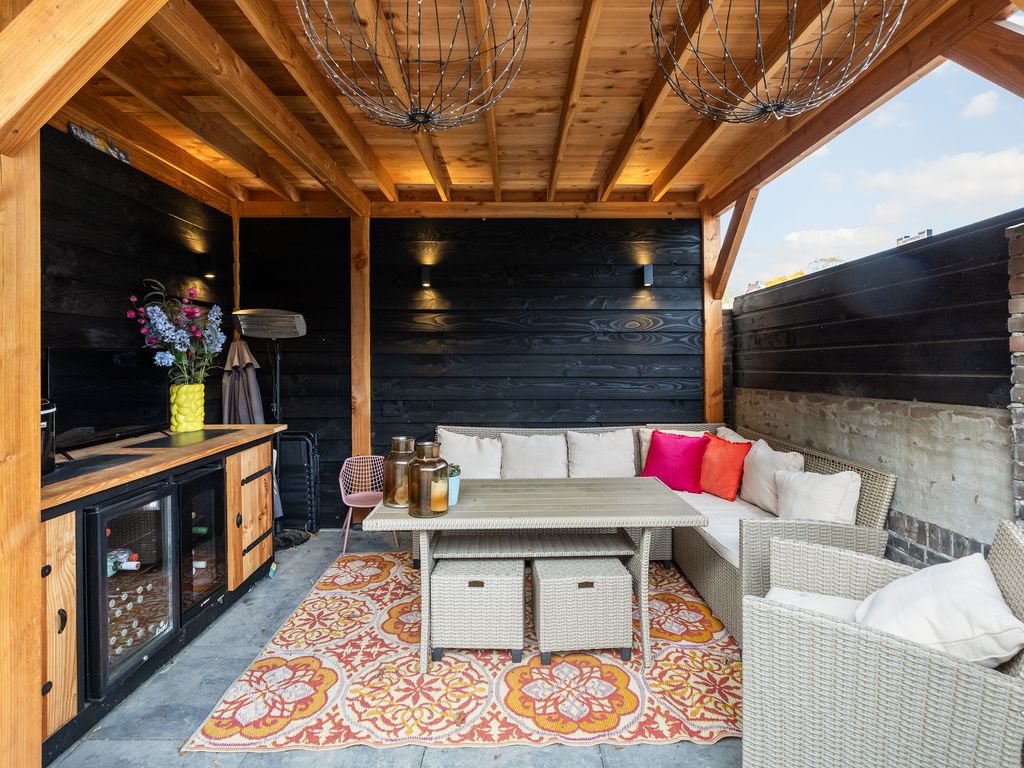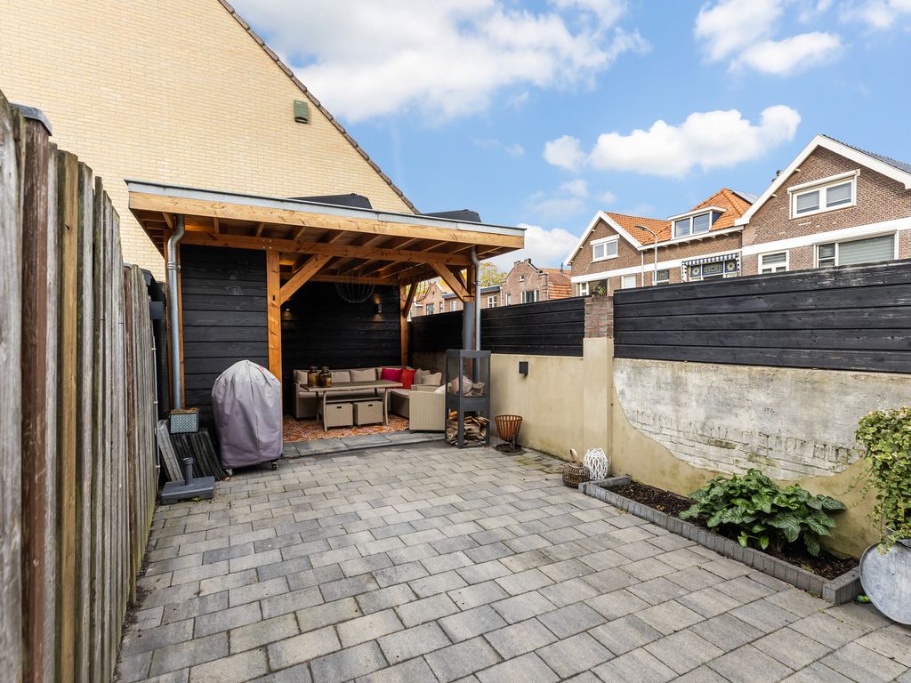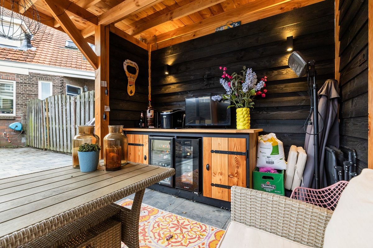 De achtertuin, gelegen op het westen, heeft een diepte van circa 10 meter en is onderhoudsvriendelijk aangelegd. Achterin de tuin staat een tuinhuis/loungeruimte, ideaal voor opslag of een gezellige zithoek.