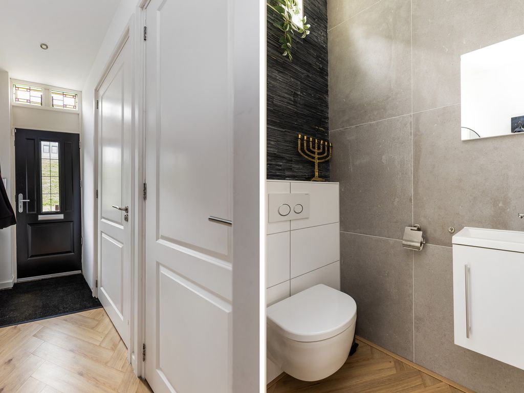 Bij binnenkomst stap je in de hal met toegang tot de moderne meterkast, moderne toiletruimte en de sfeervolle woonkamer.