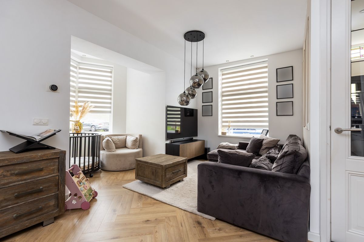 De afwerking is verzorgd, en dankzij de vele ramen komt er veel daglicht binnen.
