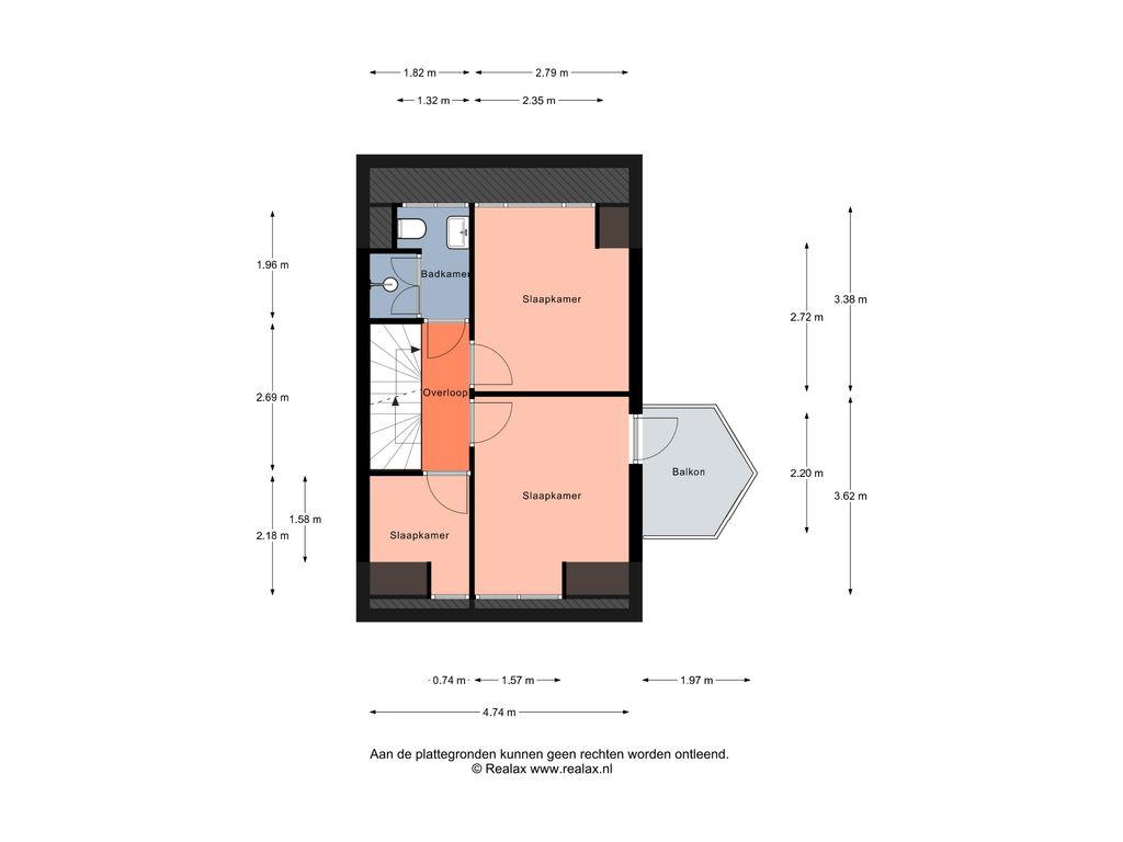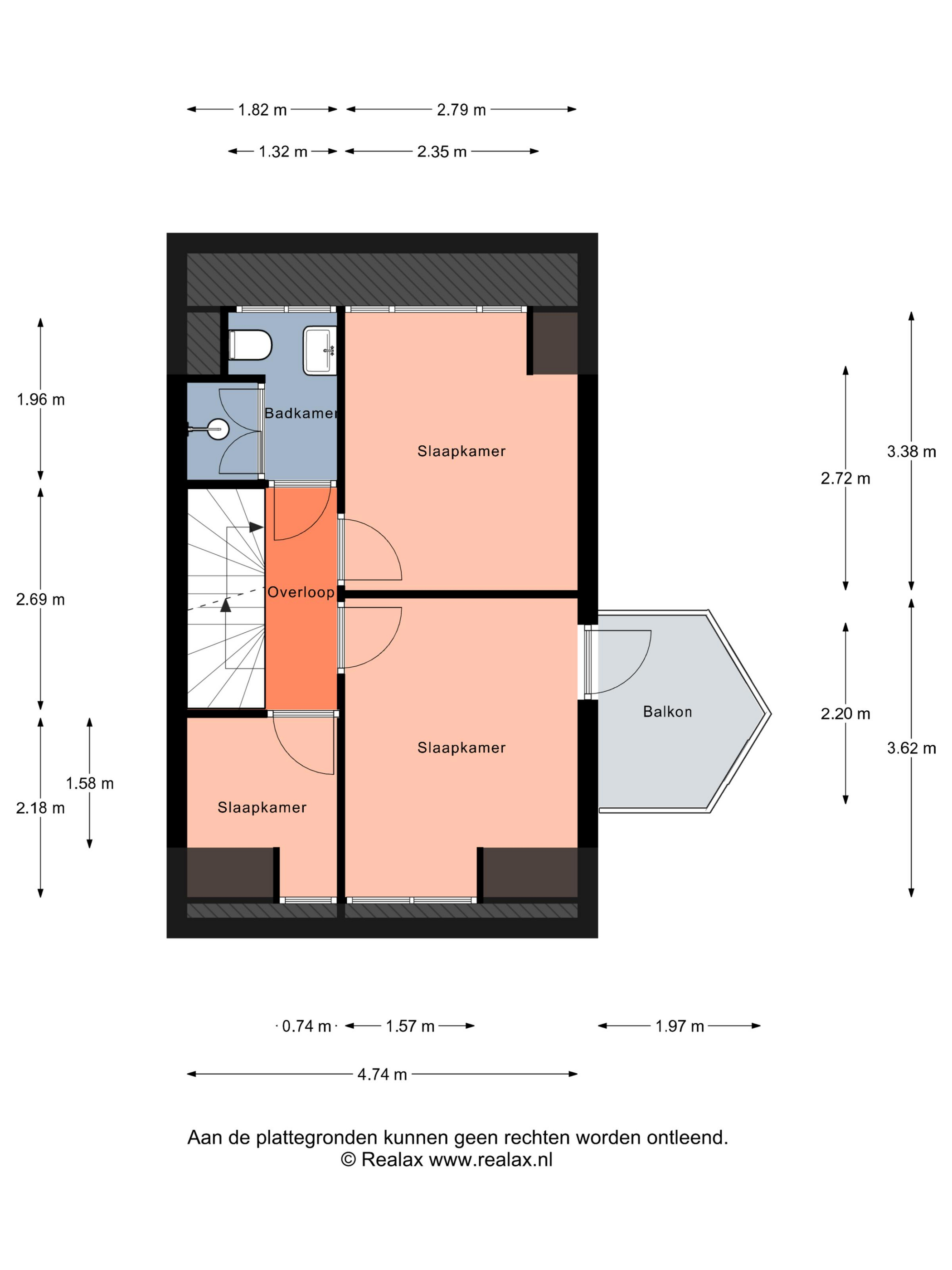 Op de eerste verdieping bevinden zich 3 slaapkamers met de volgende afmetingen: