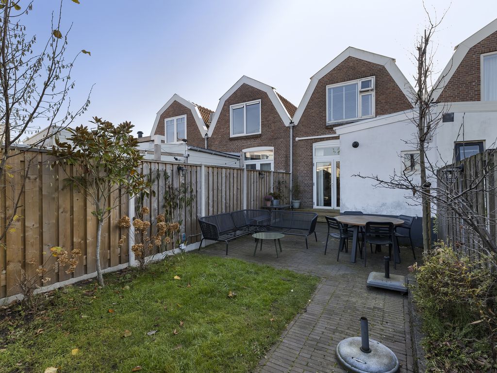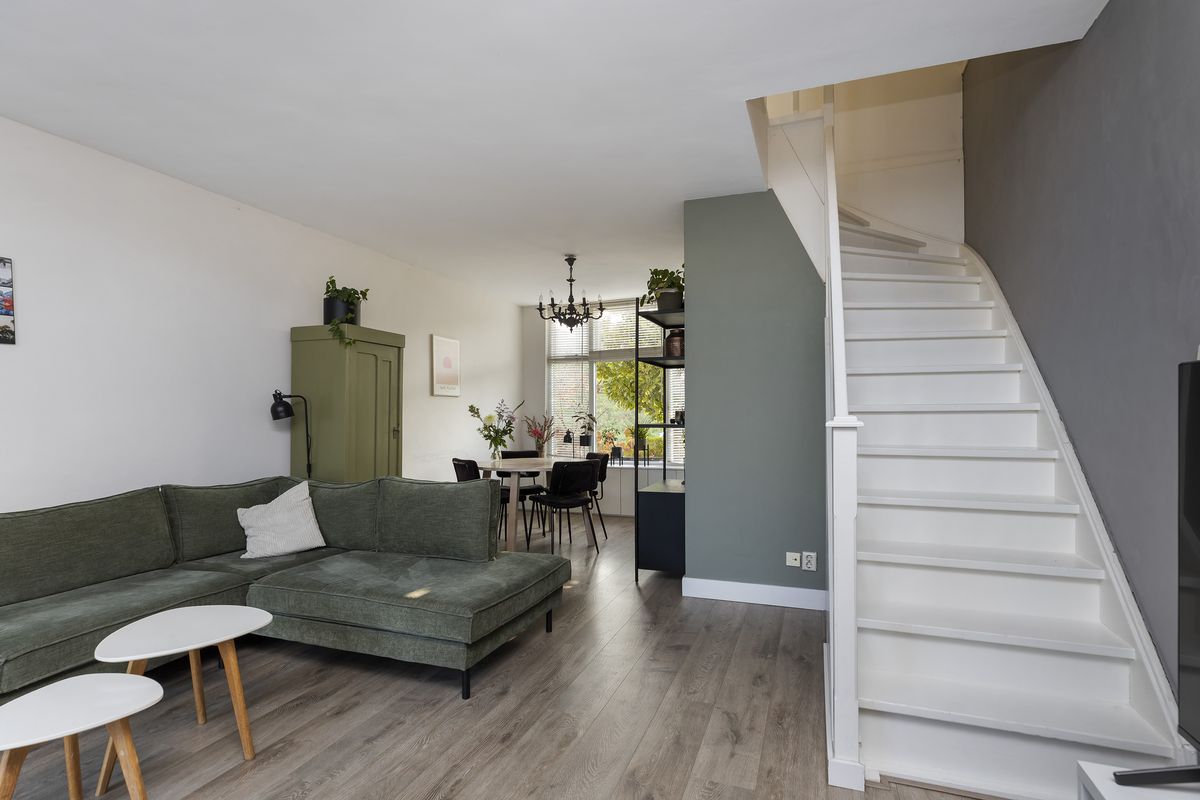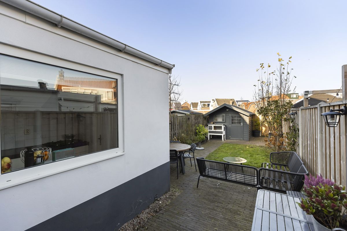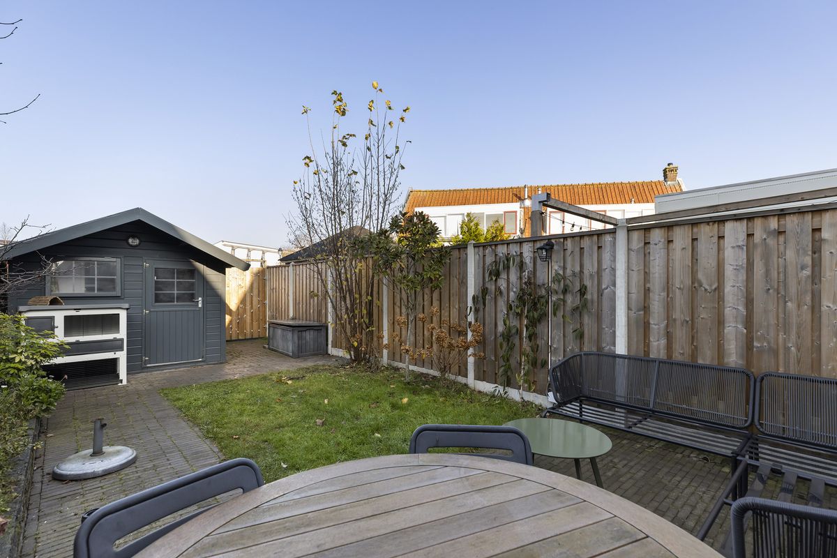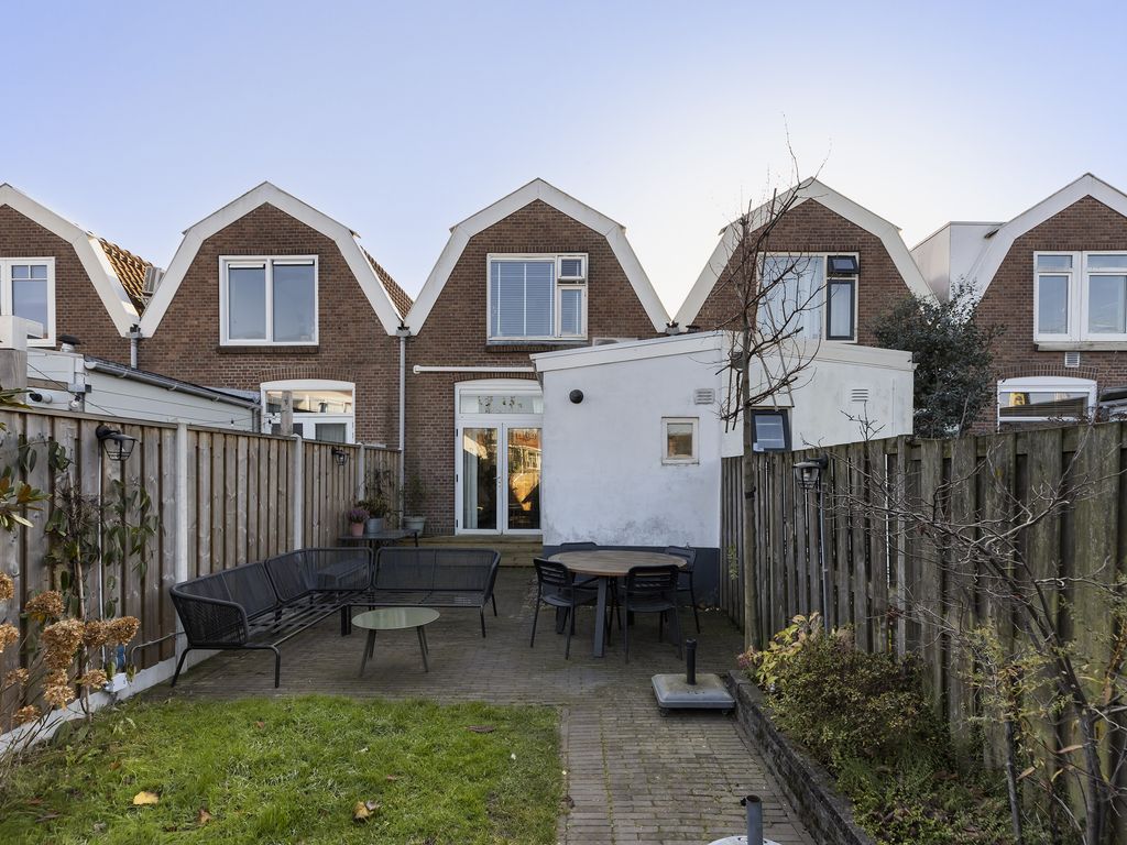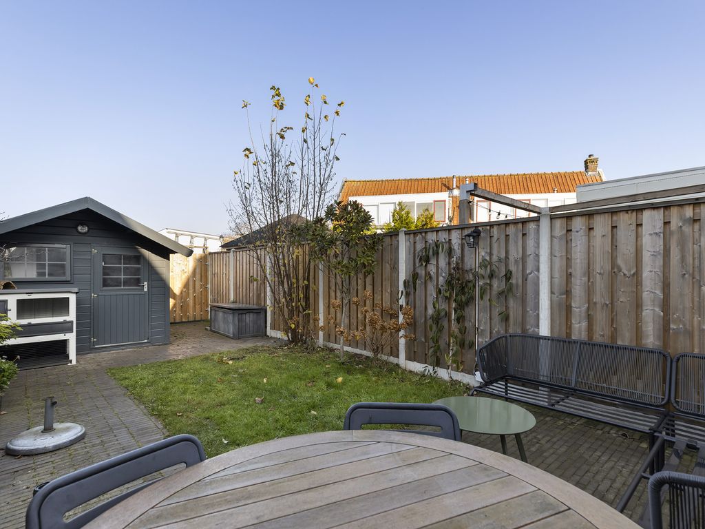 De woning beschikt o.a. over een gezellige woonkamer met openslaande deuren naar de achtertuin, een aangebouwde keuken met vloerverwarming, een bijkeuken/wasruimte en een diepe zonnige achtertuin met houten berging en achterom. Op de verdieping bevinden zich 2 slaapkamers en de badkamer.