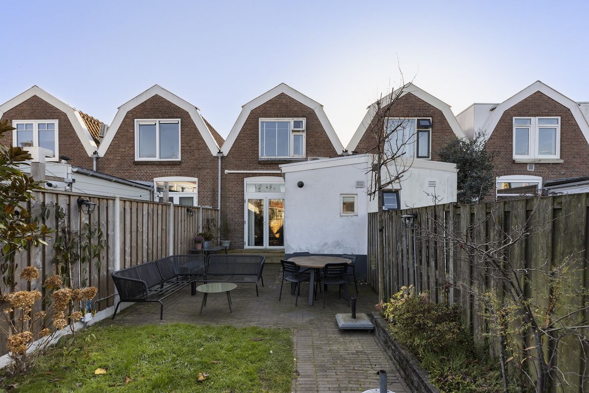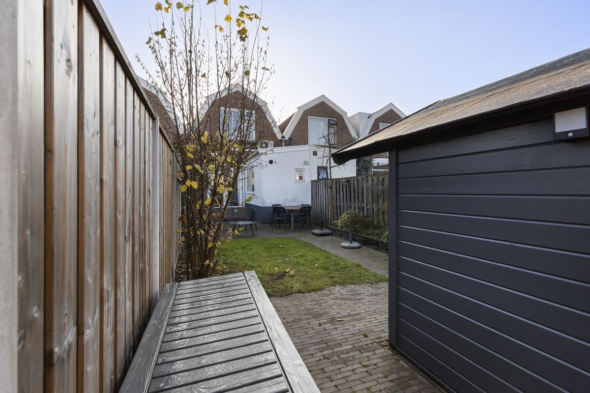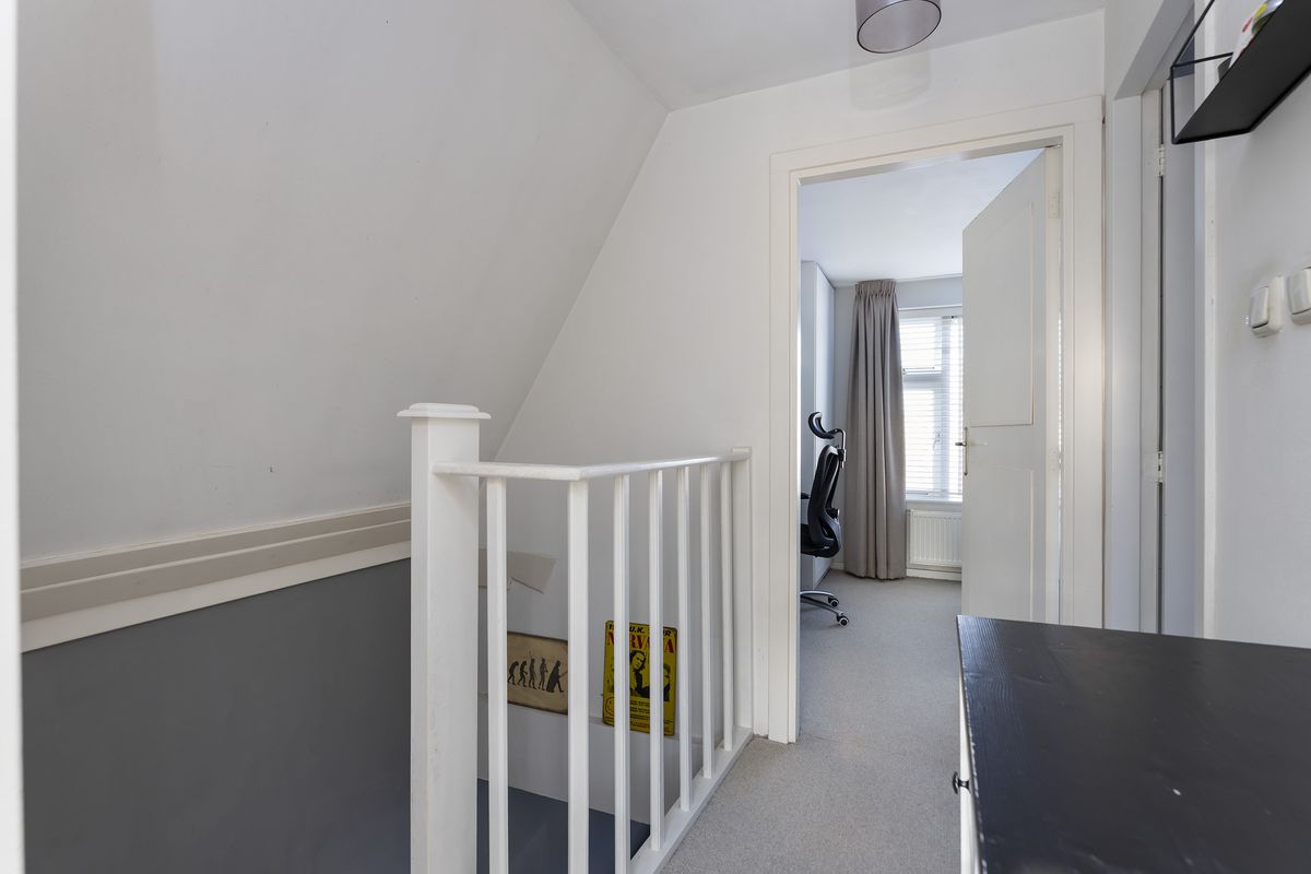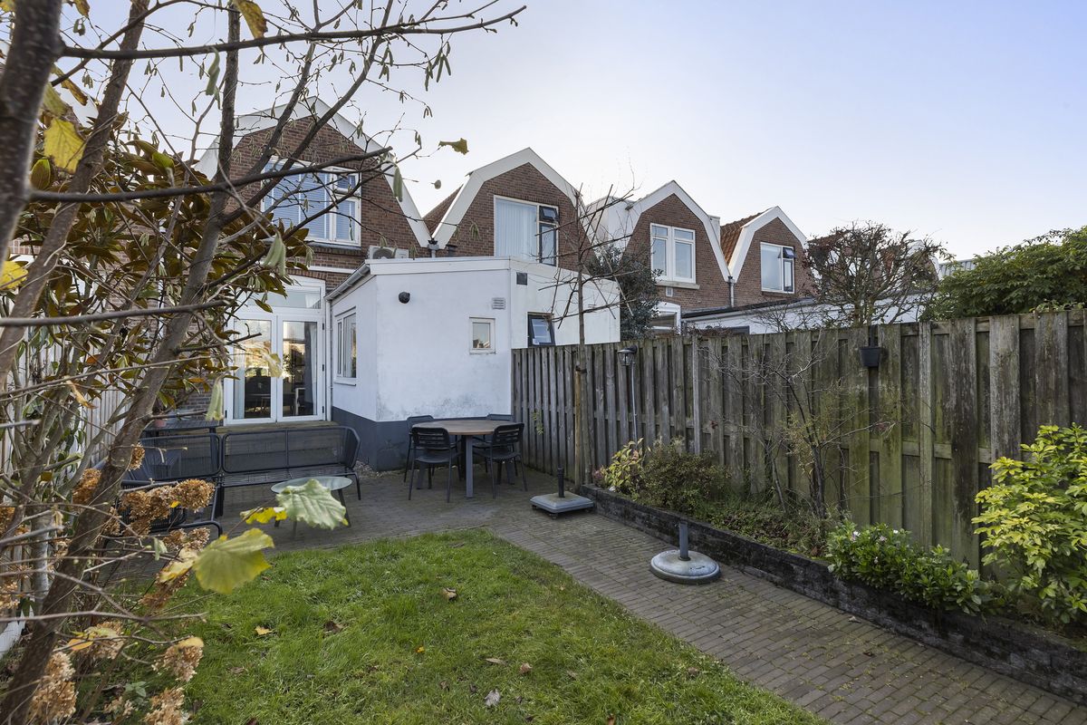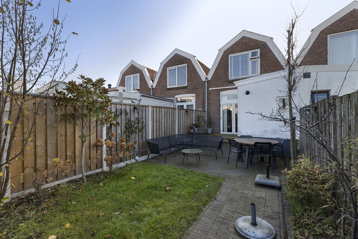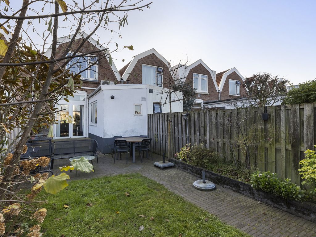 De woning beschikt o.a. over een gezellige woonkamer met openslaande deuren naar de achtertuin, een aangebouwde keuken met vloerverwarming, een bijkeuken/wasruimte en een diepe zonnige achtertuin met houten berging en achterom. Op de verdieping bevinden zich 2 slaapkamers en de badkamer.