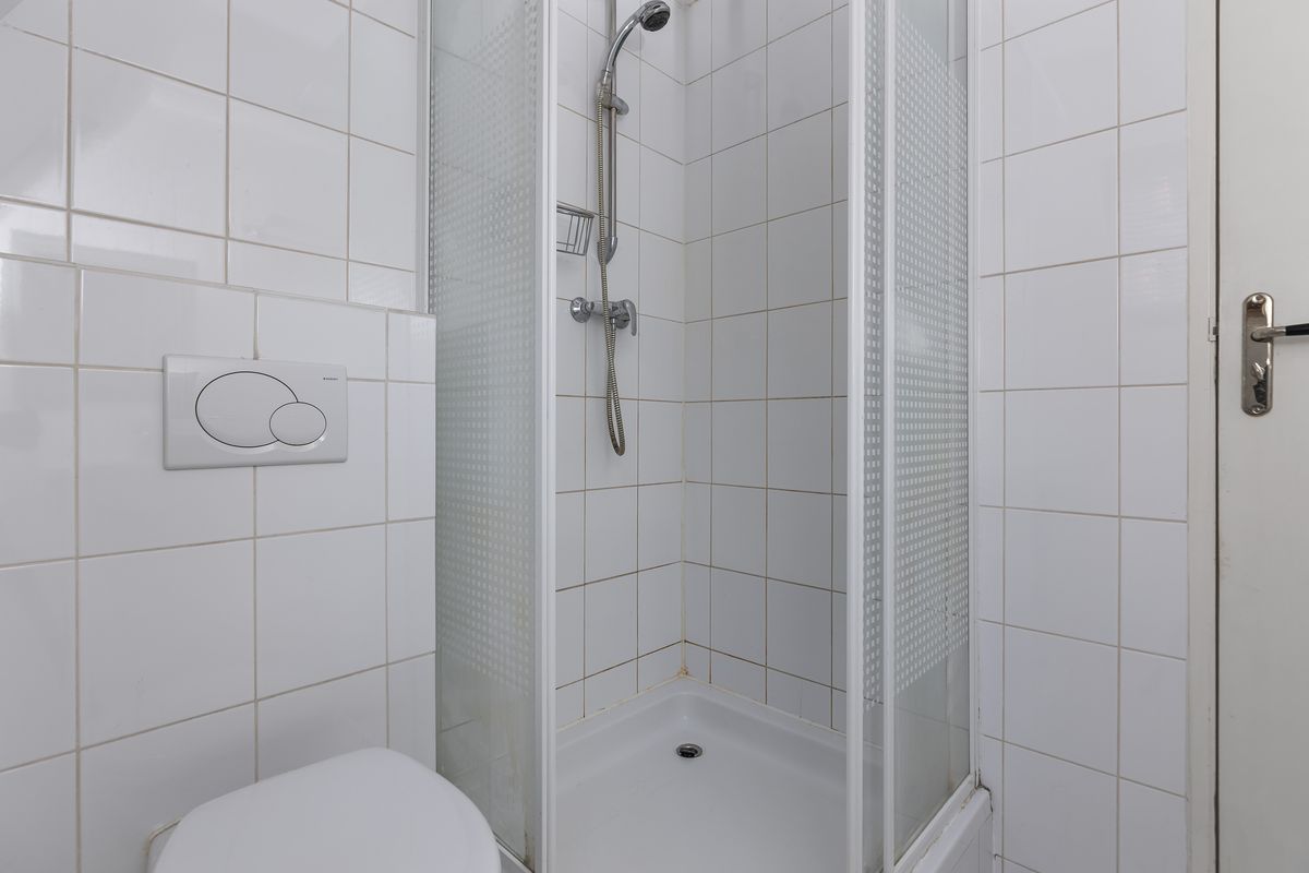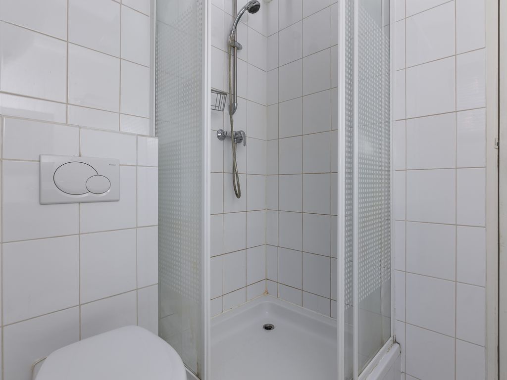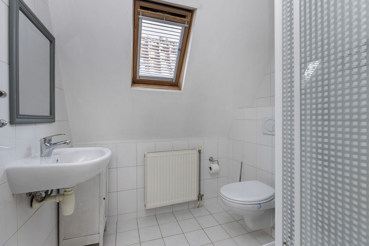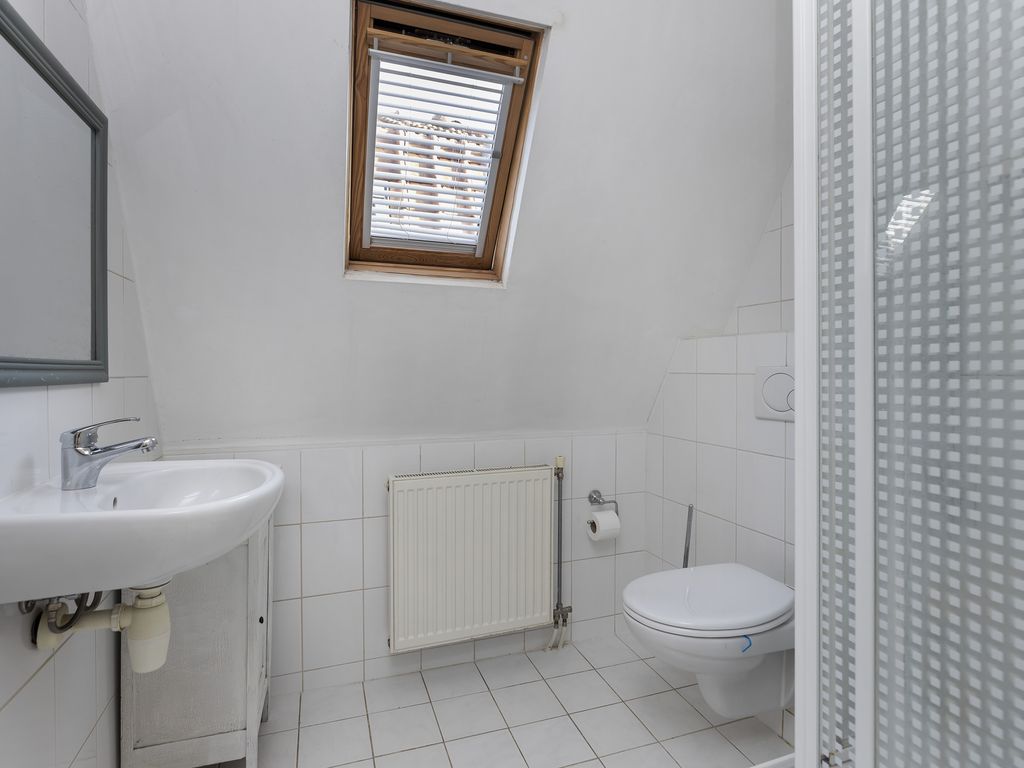 De badkamer heeft een afmeting van ca 2,06 x 1,52 m en is voorzien van een douchecabine, 2e toilet en wastafel. De badkamer is voorzien van een dakraam.