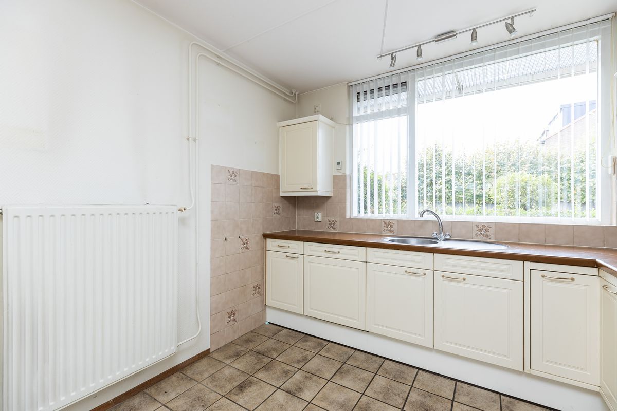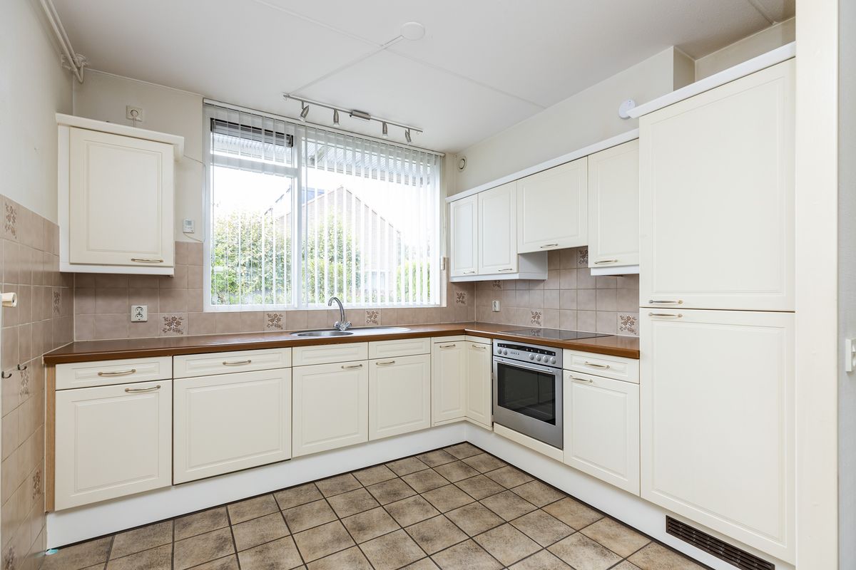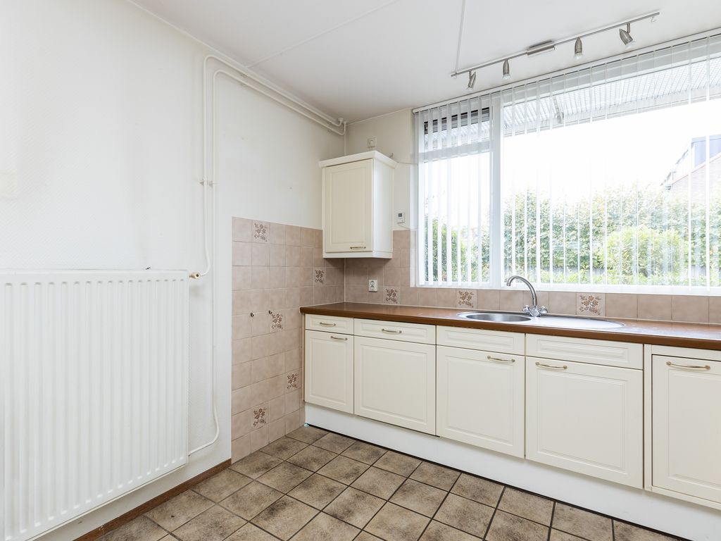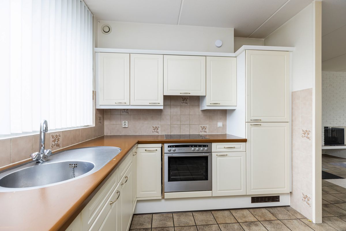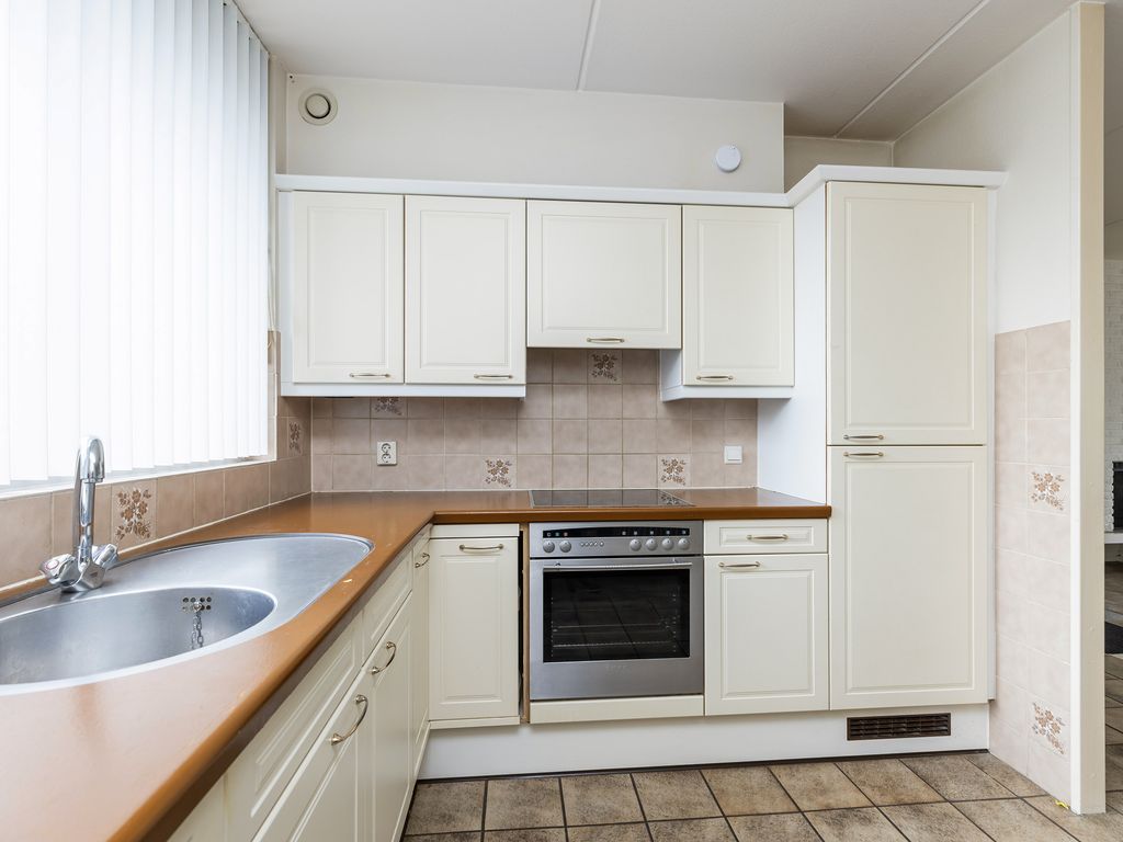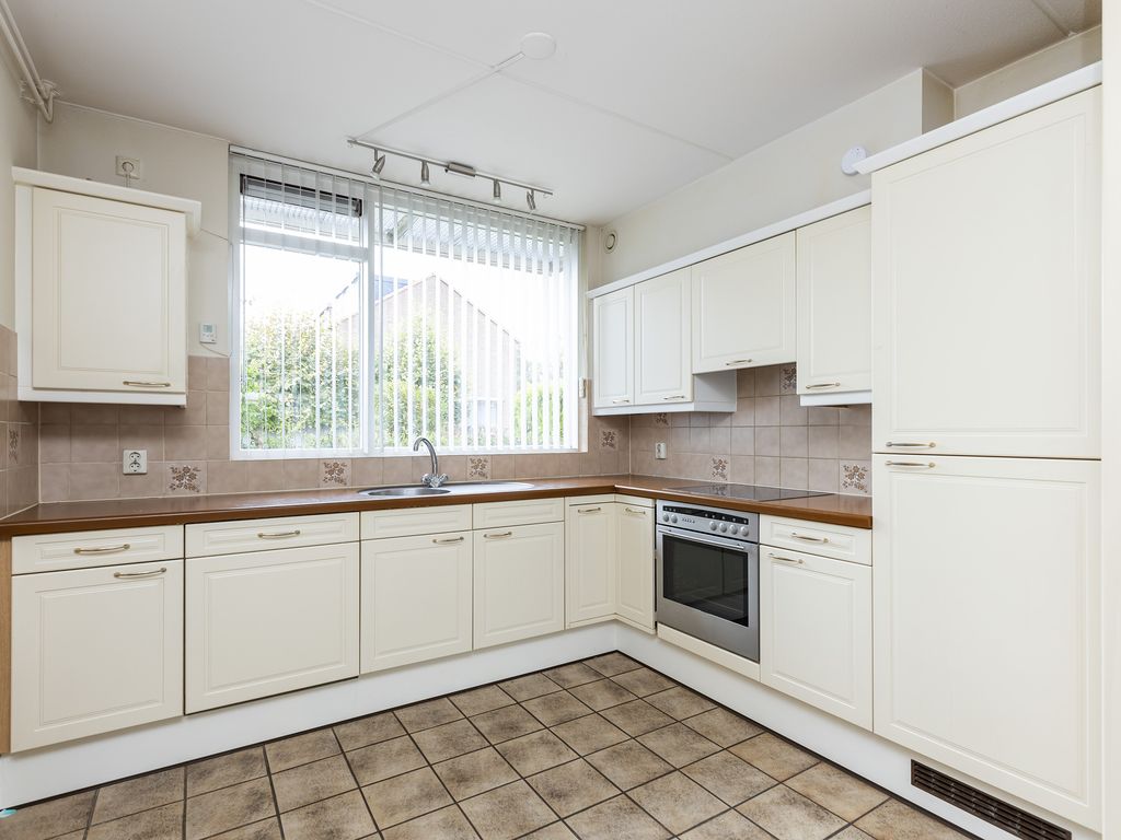De open keuken (ca. 8 m²) bevindt zich in hoekopstelling en is gelegen aan de voorzijde.