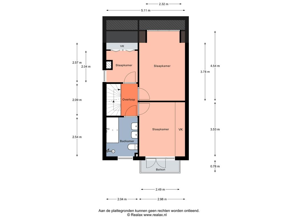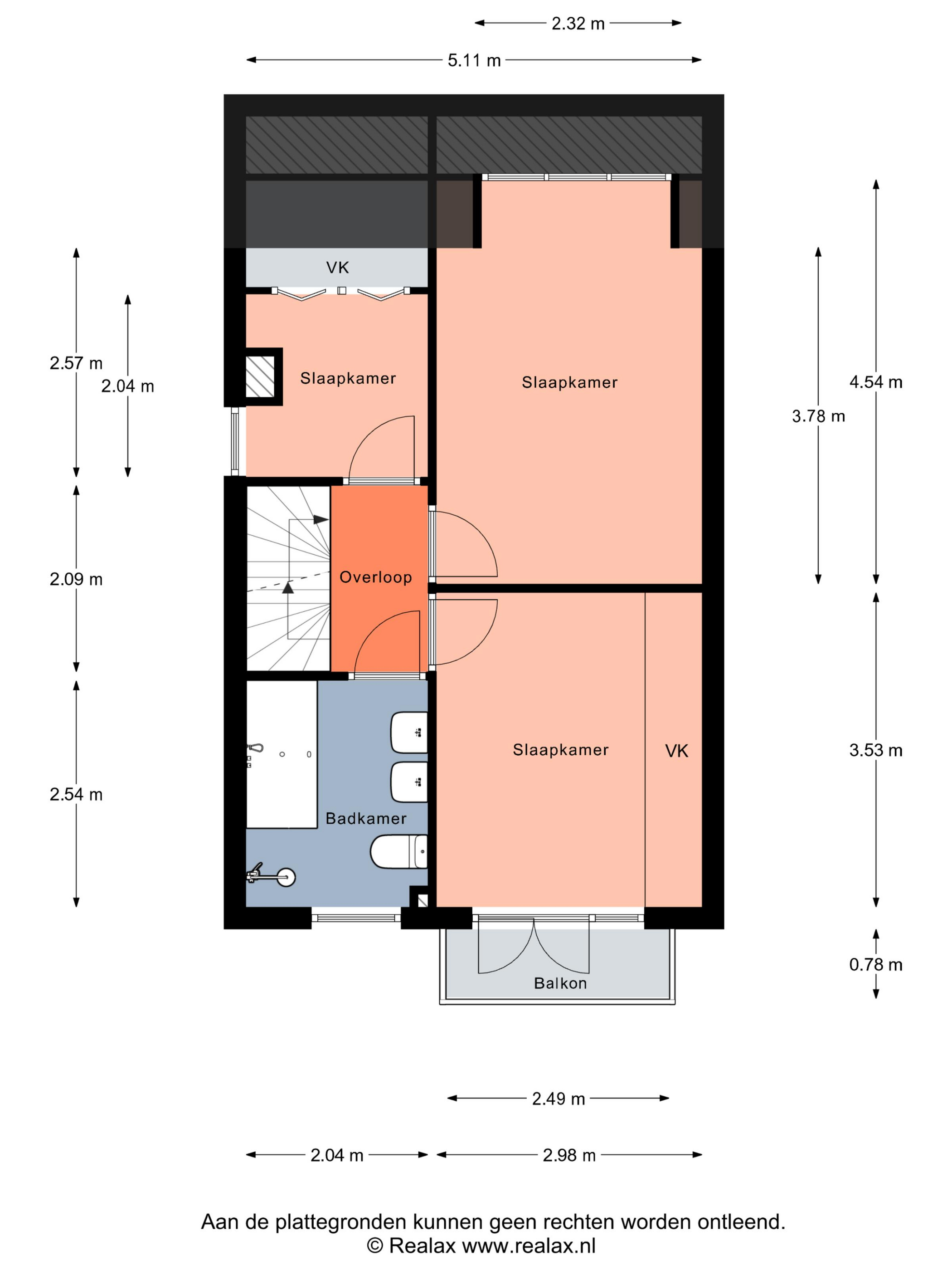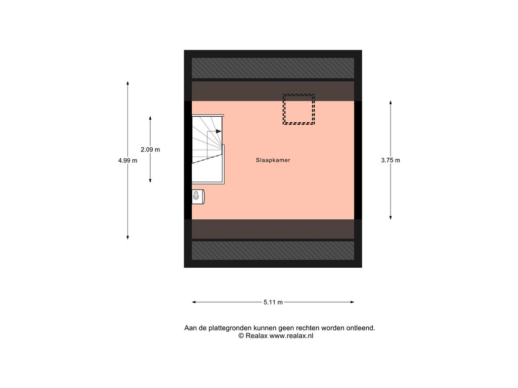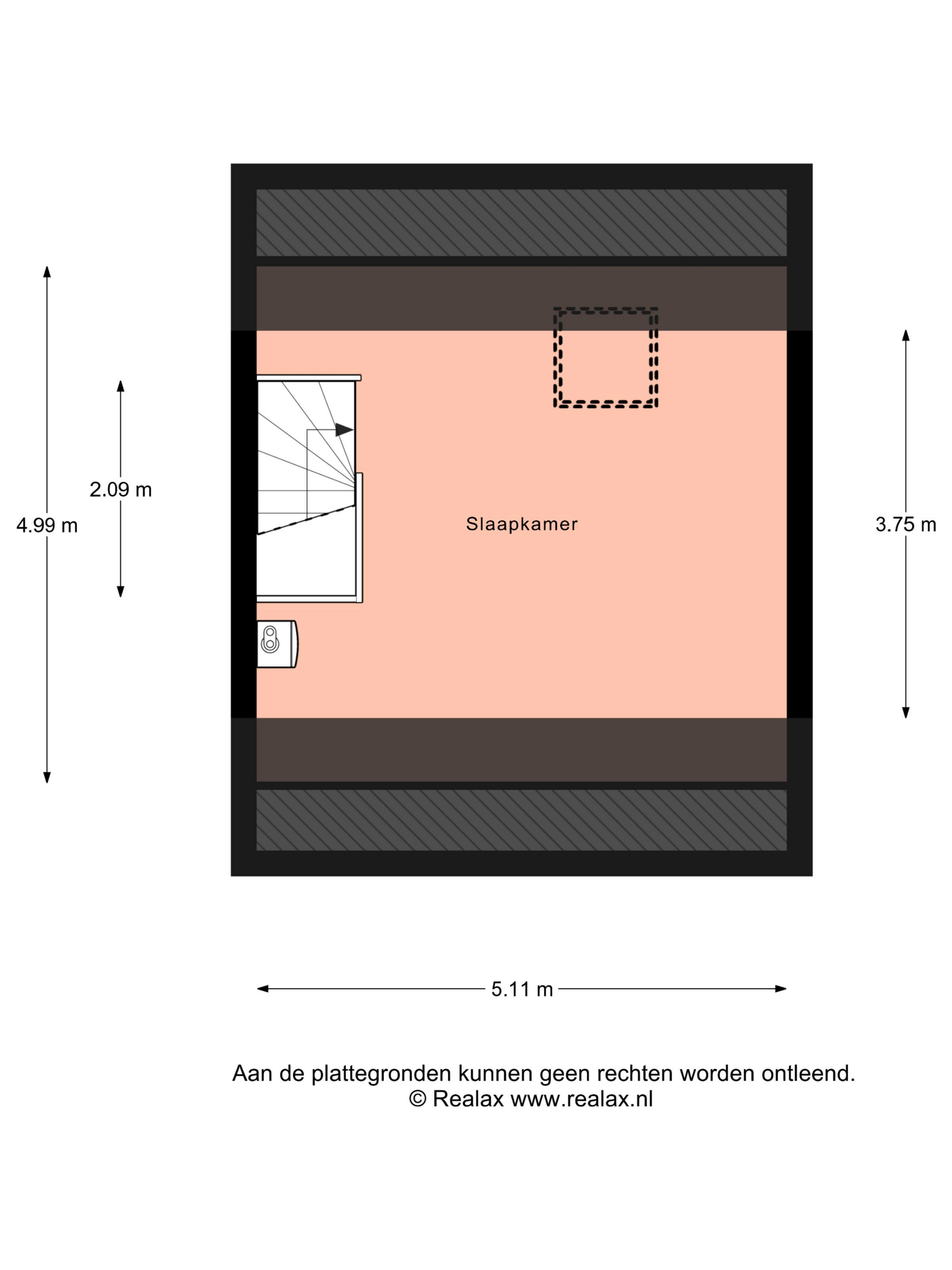 Slaapkamer 1 (achterzijde): ca. 4,54 x 2,49 m, voorzien van airco en dakkapel.
