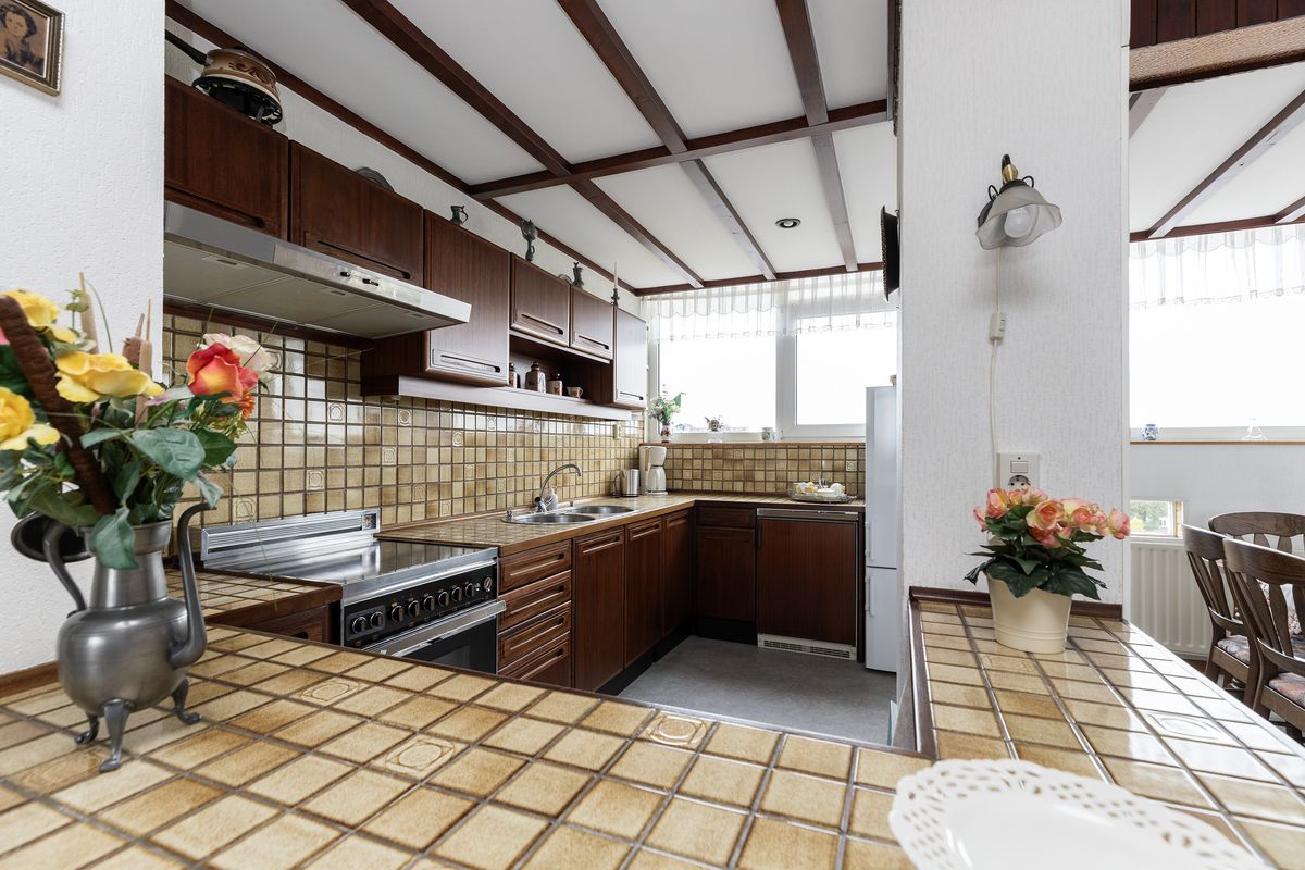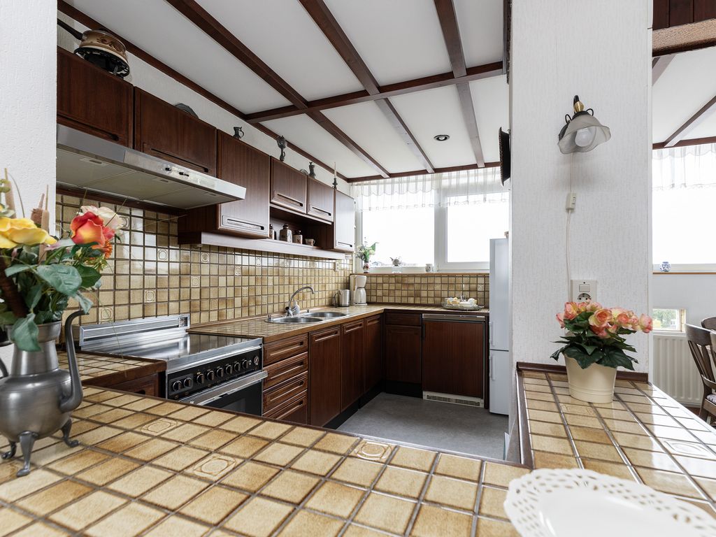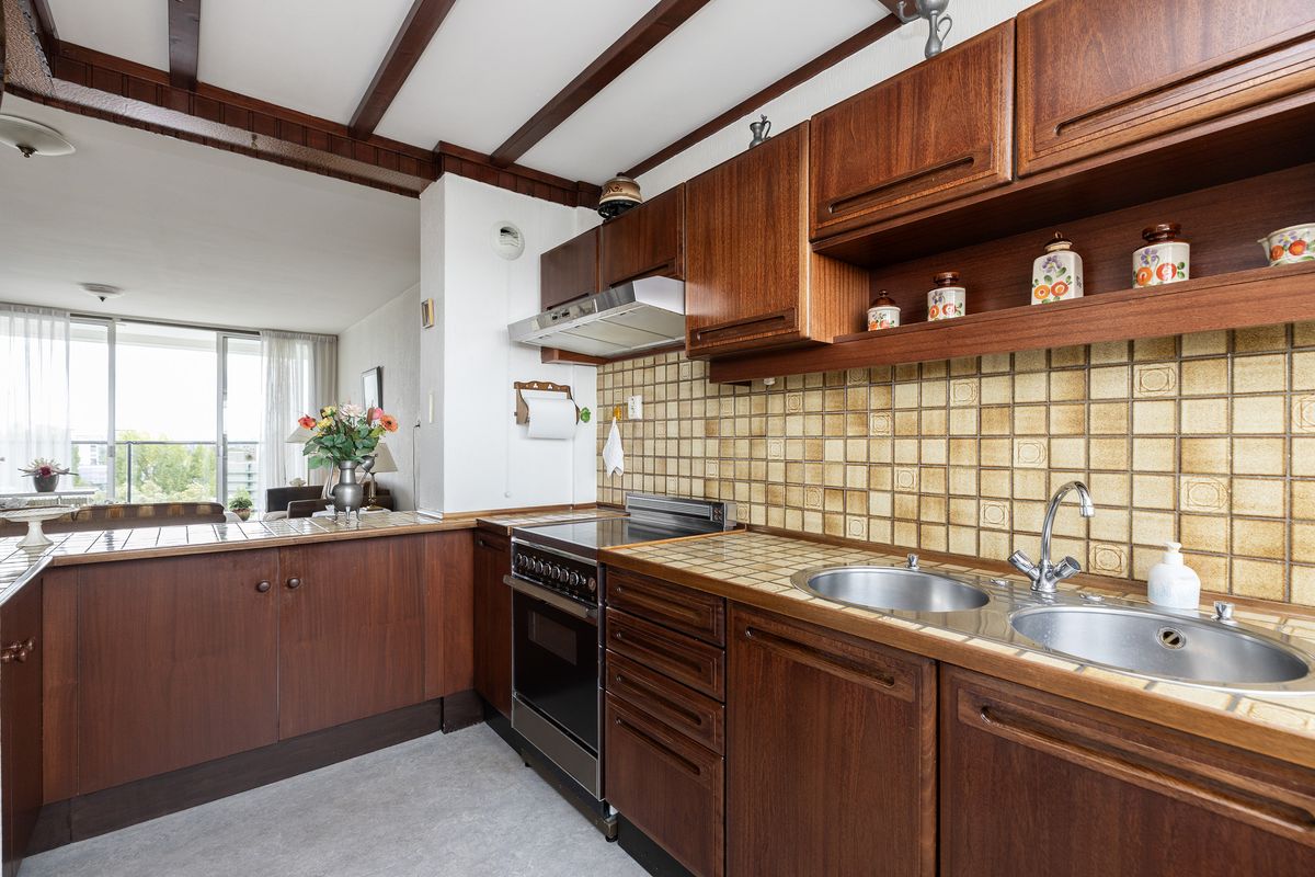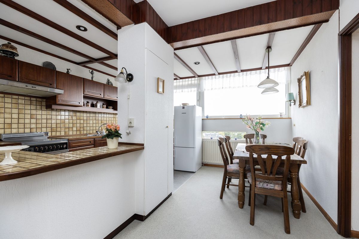 De open keuken is uitgevoerd in een U vorm en staat in verbinding met de woonkamer.