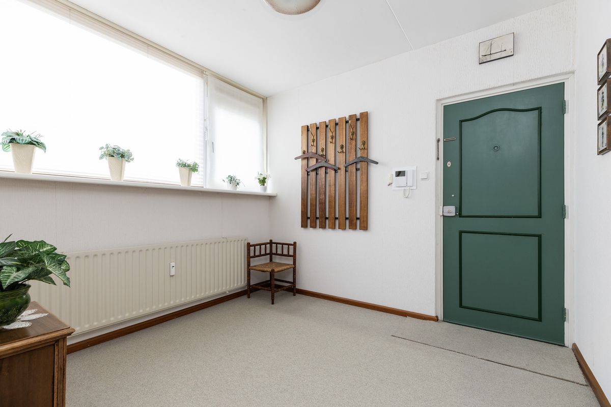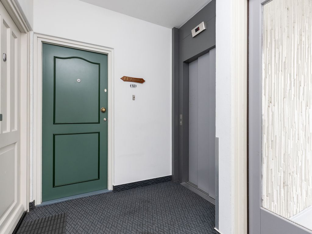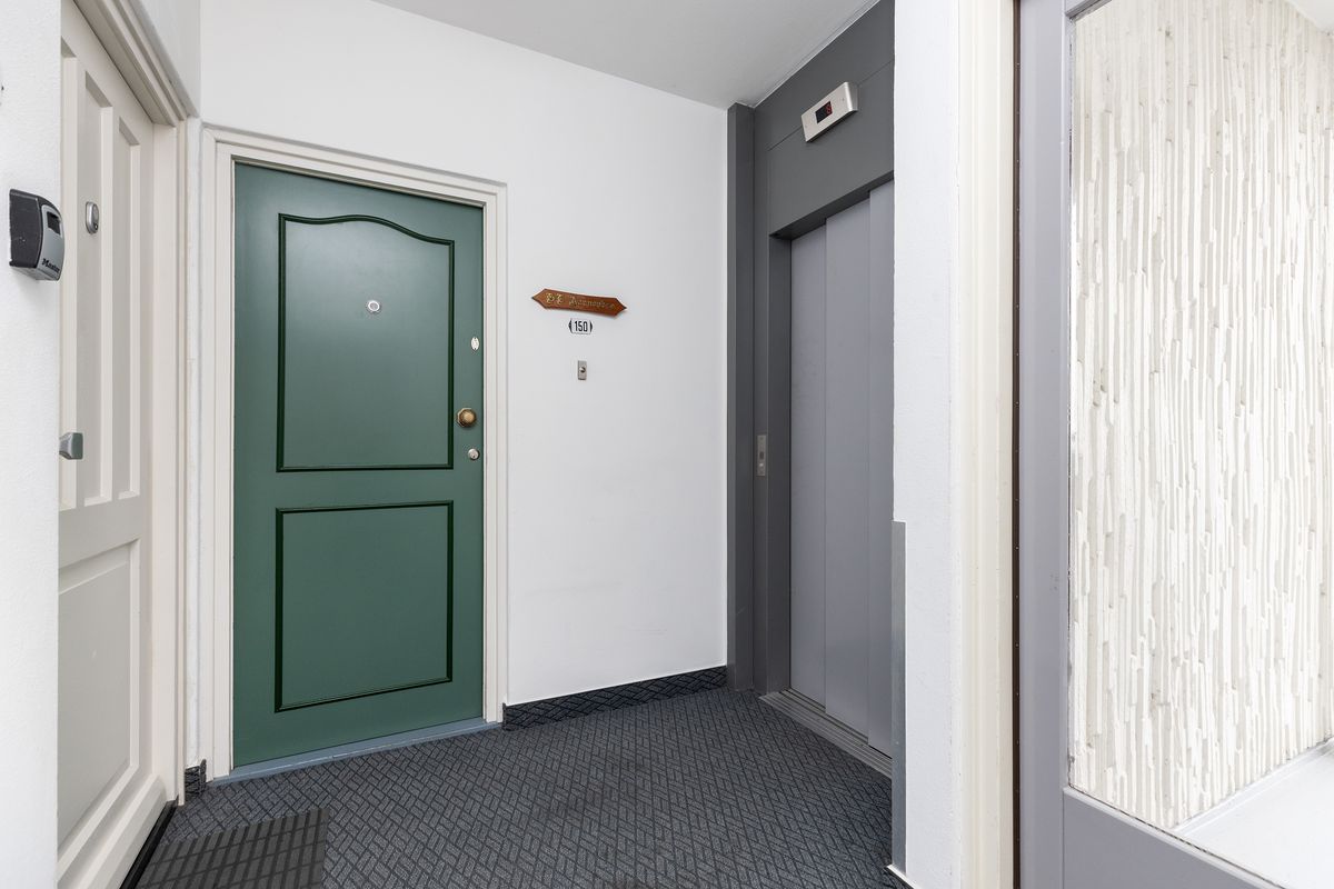 Na het verlaten van de lift bereikt u in enkele stappen de voordeur van het appartement.