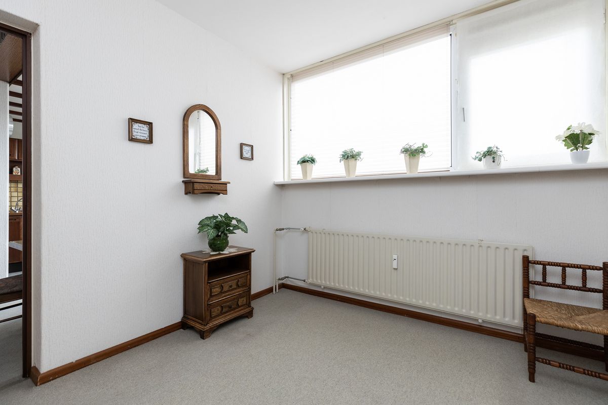 Via een tussenhal zijn de badkamer, toiletruimte en 2 slaapkamers bereikbaar.