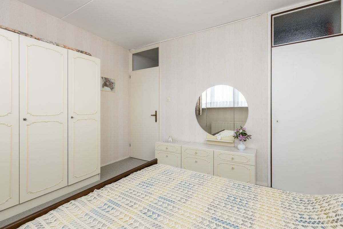 Slaapkamer 1; aan de voorzijde beschikt over een ruime bergkast waarin de boiler is geplaatst.
