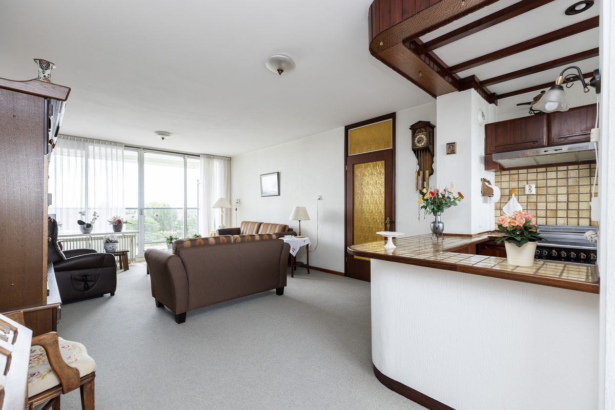 Dit 3-kamer appartement (grootste type met ruime hal) is gelegen op de 8e verdieping en beschikt over een riant terras van circa 10 m². Vanaf hier geniet u dagelijks van een prachtig uitzicht en veel privacy.