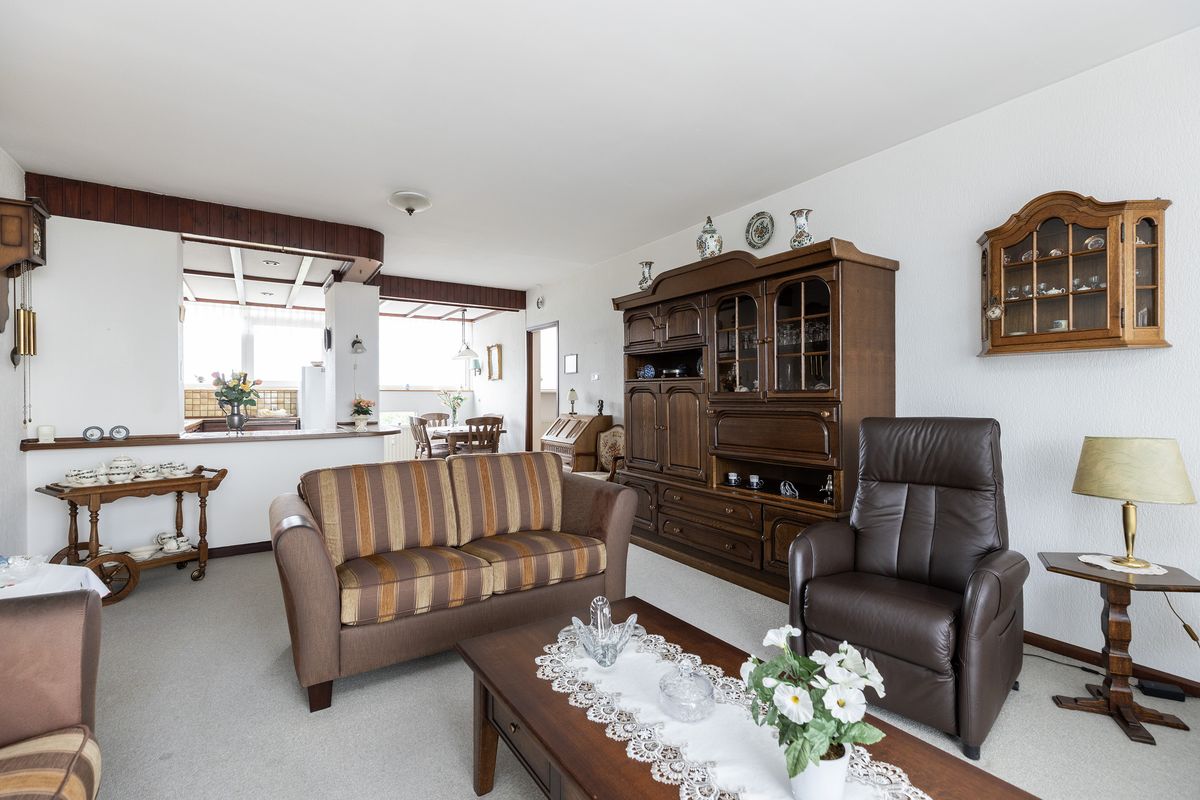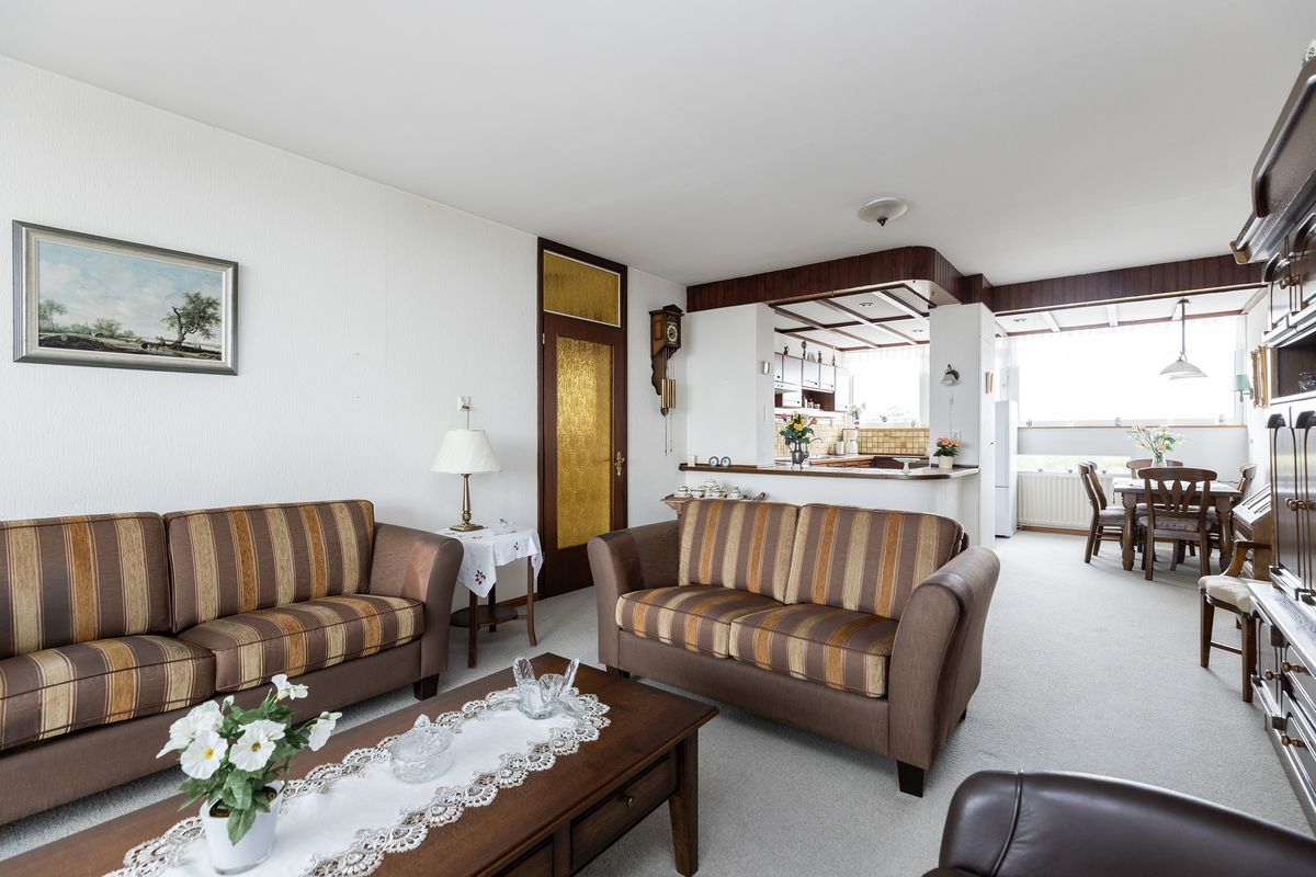 Het totale oppervlak van de woonkamer met keuken bedraagt ca 42 m2!