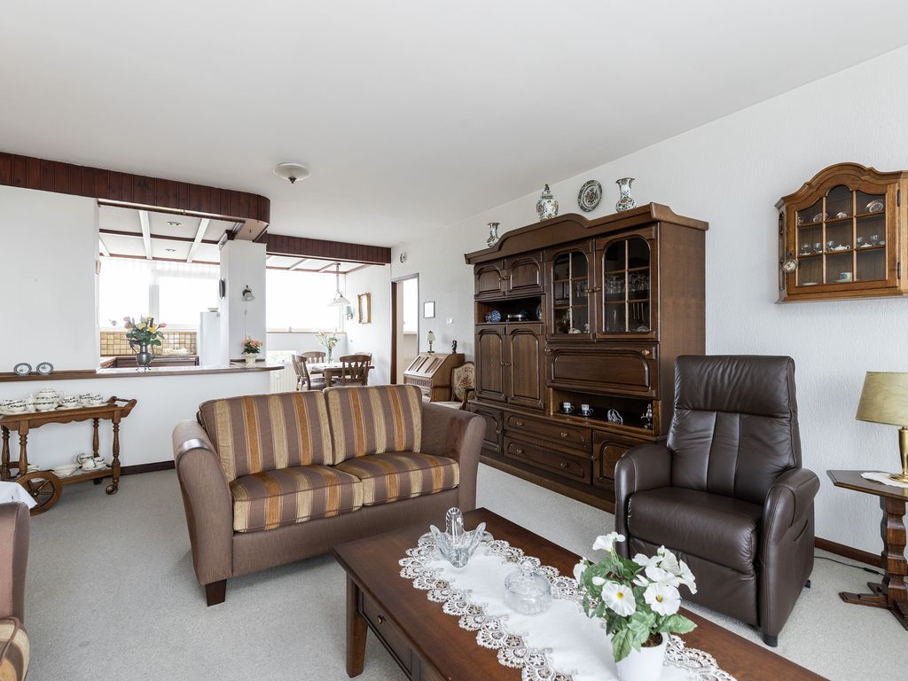 De ruime woonkamer heeft een schuifpui die toegang biedt tot het zonnige terras met schitterend uitzicht.