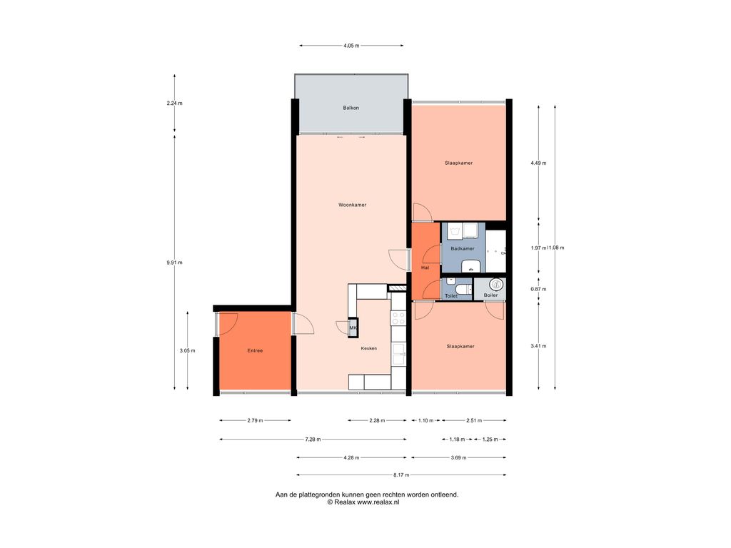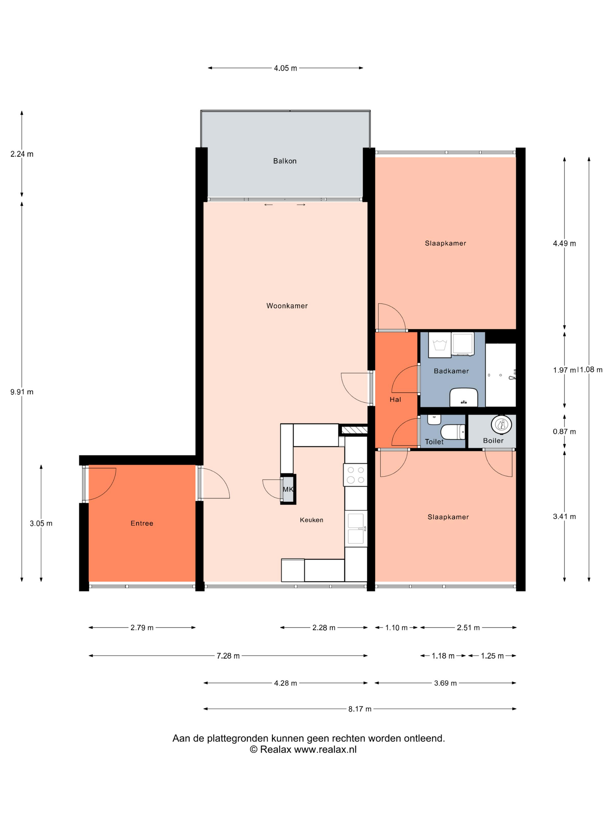 Indeling appartement – 8e verdieping