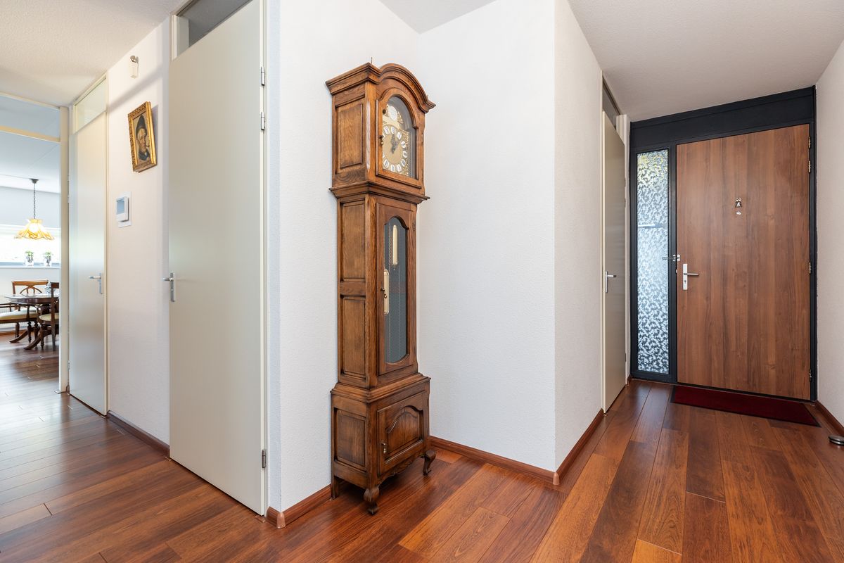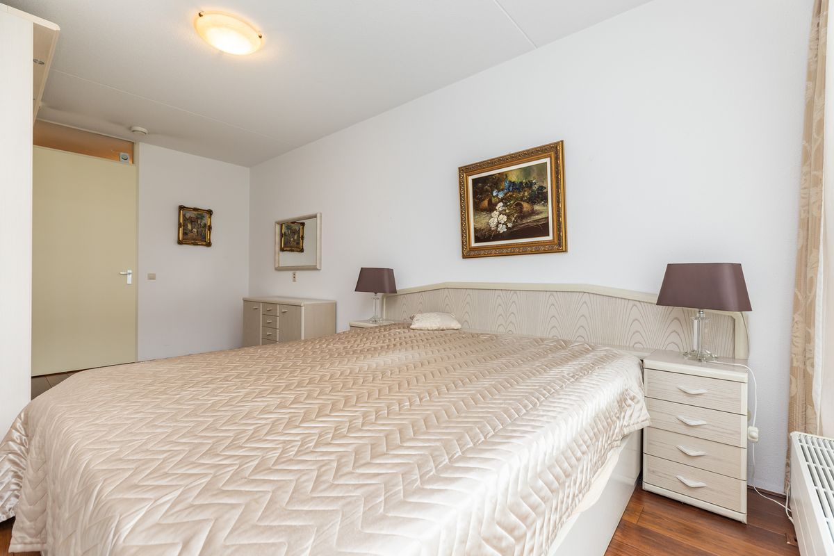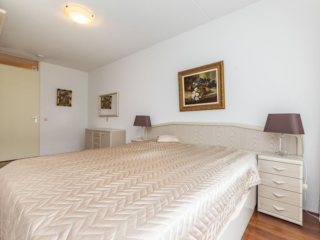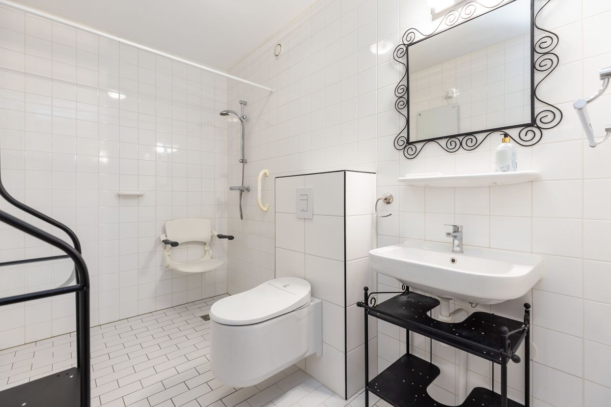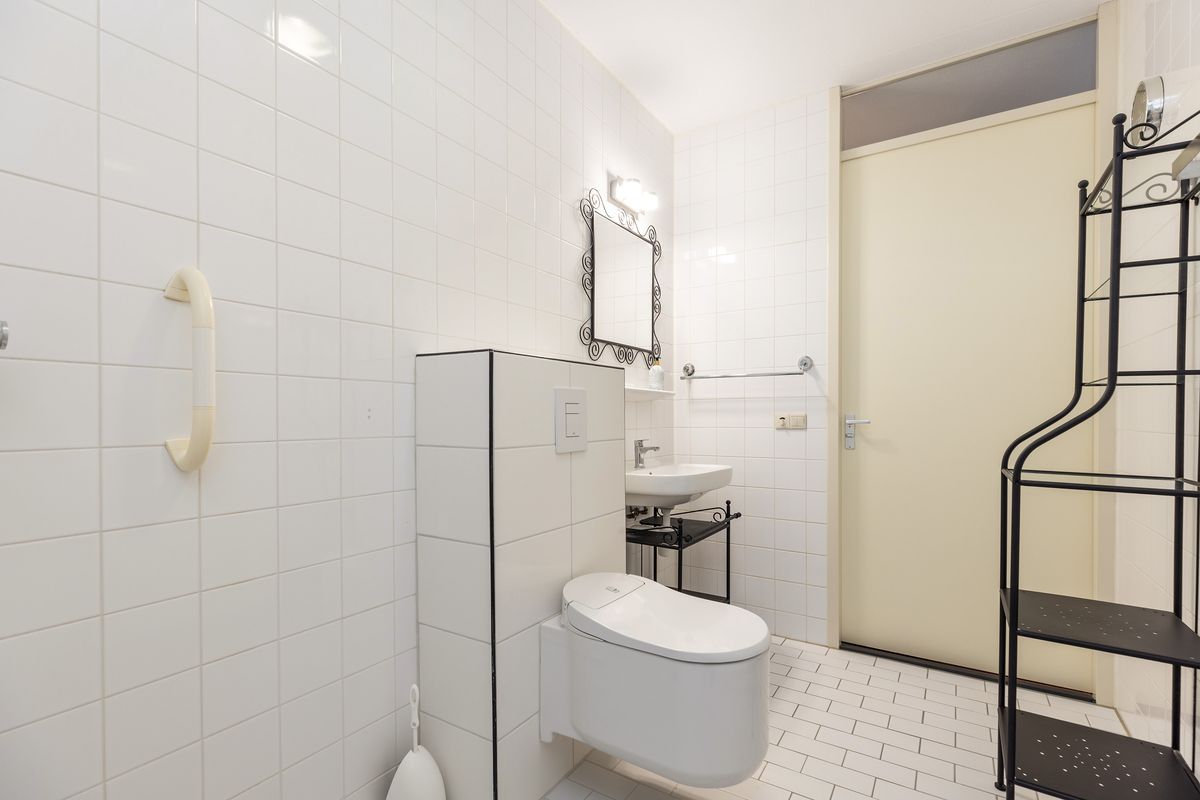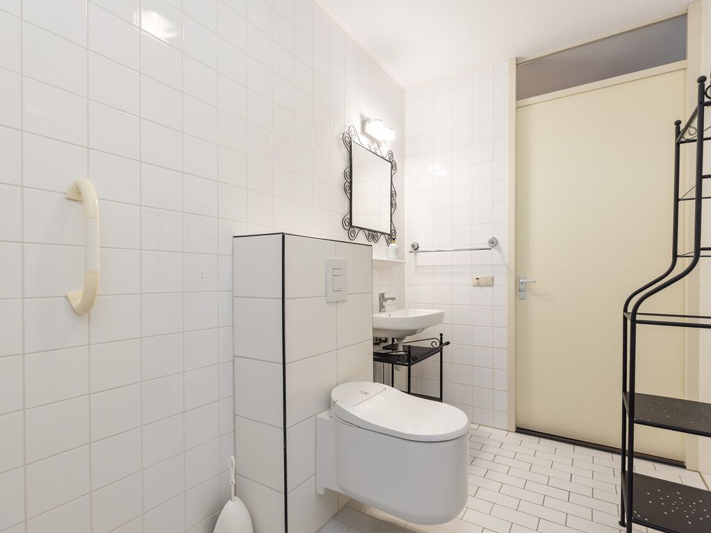 Daarnaast beschikt het appartement over een ruime slaapkamer, een inloopkast bereikbaar vanuit de hal, een separate toiletruimte, een licht afgewerkte badkamer met inloopdouche, wastafel en tweede toilet, en een aparte berging/wasruimte met opstelling voor de cv-installatie.