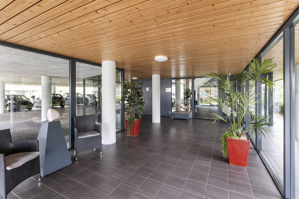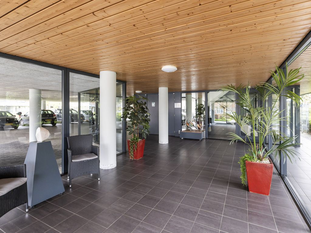 Vanuit de centrale hal zijn het trappenhuis, de lift, de afgesloten algemene fietsenstalling en het afgesloten parkeerterrein bereikbaar.