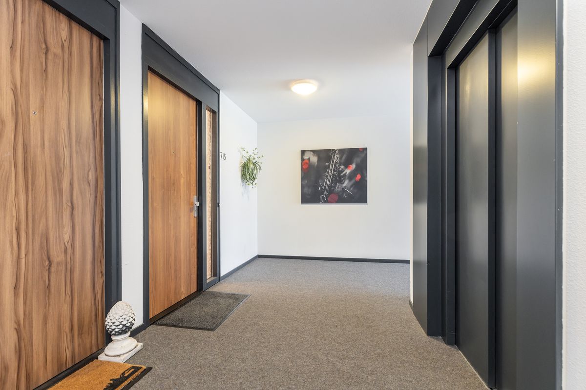 Via de lift bereikt u de overloop met toegang tot het appartement.